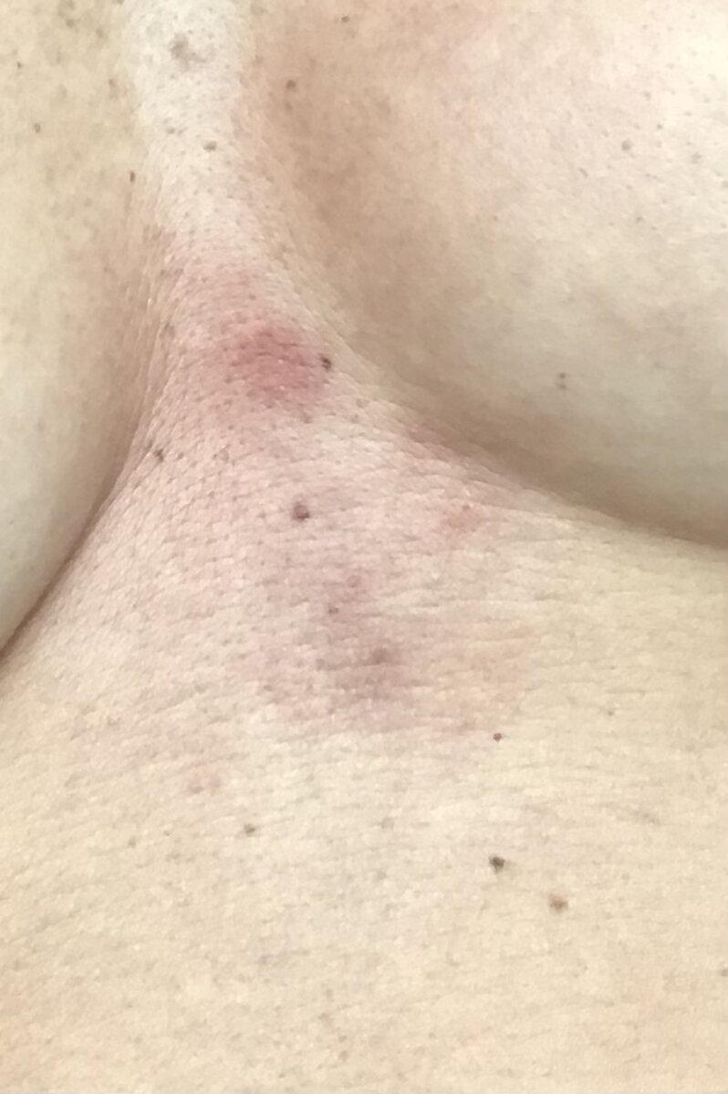 Buongiorno! Da agosto dell’anno scorso ho queste macchioline trani seni. A luglio ero stata operata al seno ( mastectomia seno sinistro) e ho iniziato una cira antiestrogenica. Mi hanno detto dermatite seborroica e poi eritema.. metto delle creme anti couperose e capillari danneggiati.. al mattino sembrano piu’chiare, durante il giorno tra sudore ecc si infiamma un po’ lazona. Non prudono, non sono rialzate, vanno via con sfregamento e digitopressione. Cosa ne pensa? Allego foto