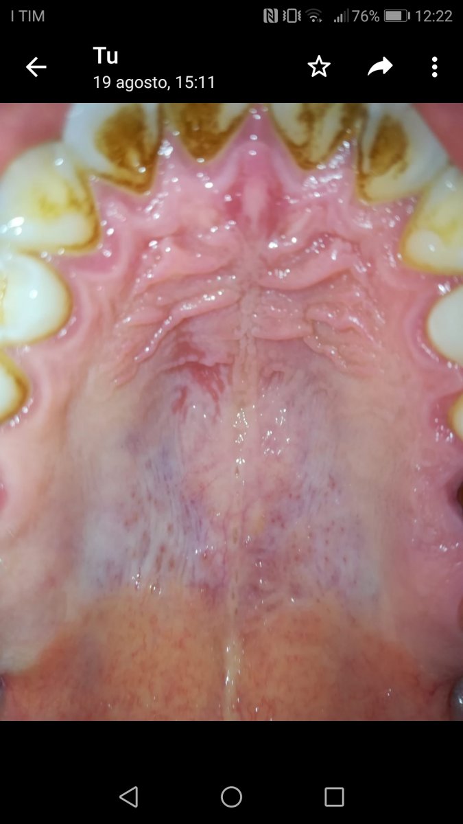 Alessio89PartecipanteBuongiorno Gentilissimi Dottori, vi scrivo per chiedere un consulto su delle manifestazioni orali che ormai mi accompagnano da un anno circa. Queste macchie si allargano e si rimpiccioliscono quasi fino a scomparire, ma le forma e praticamente quasi sempre identica, a volte si crea un nuovo punto e poi sparisce del tutto. Come da foto a volte si crea una patina bianca che poi sparisce lasciando la macchia ancora più rossa. Sono stato da più medici, tutti mi dicono che a 29 anni devo stare tranquillo che non si tratta di eritoplachia, anche se io sono una persona molto ansiosa e penso sempre al peggio…. secondo loro lo associano a problemi di malassorbimento intestinale, stress e una leggera carenza di vitamine del gruppo B. Sembrano in effetti legate in qualche modo sia all alimentazione (mangiando bene migliorano) che allo stress. Tutta via al momento dopo un anno sono sempre lì. Le ultime foto sono quelle della lesione come si presenta oggi le altre due dello stato peggiore e megliore. Vi ringrazio per qualunque informazione vogliate darmi.