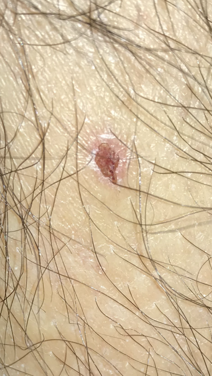 Premetto che la macchia è in rilievo quasi come una crosta ma ripeto che negli ultimi mesi non ricordo un taglio in quella zona, potrebbe risalire a una ferita dell’estate scorsa o è improbabile ? Quindi questo mi fa pensare all angioma ma non saprei davvero