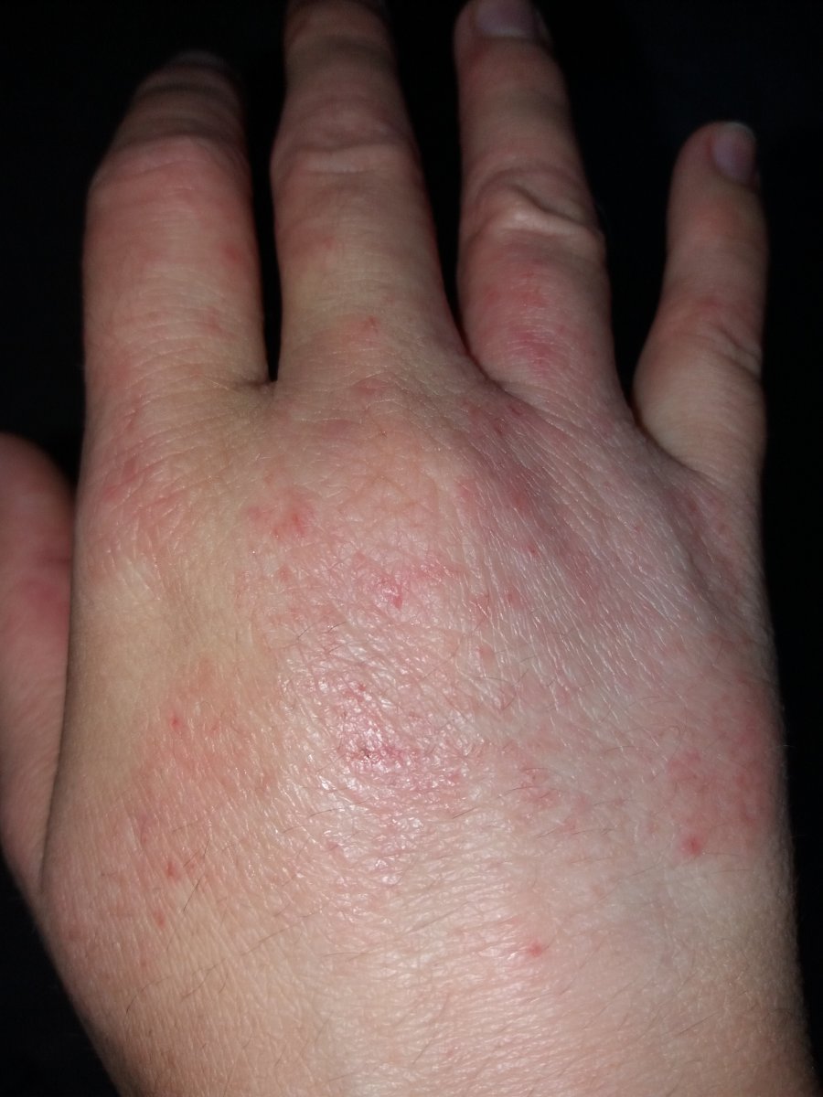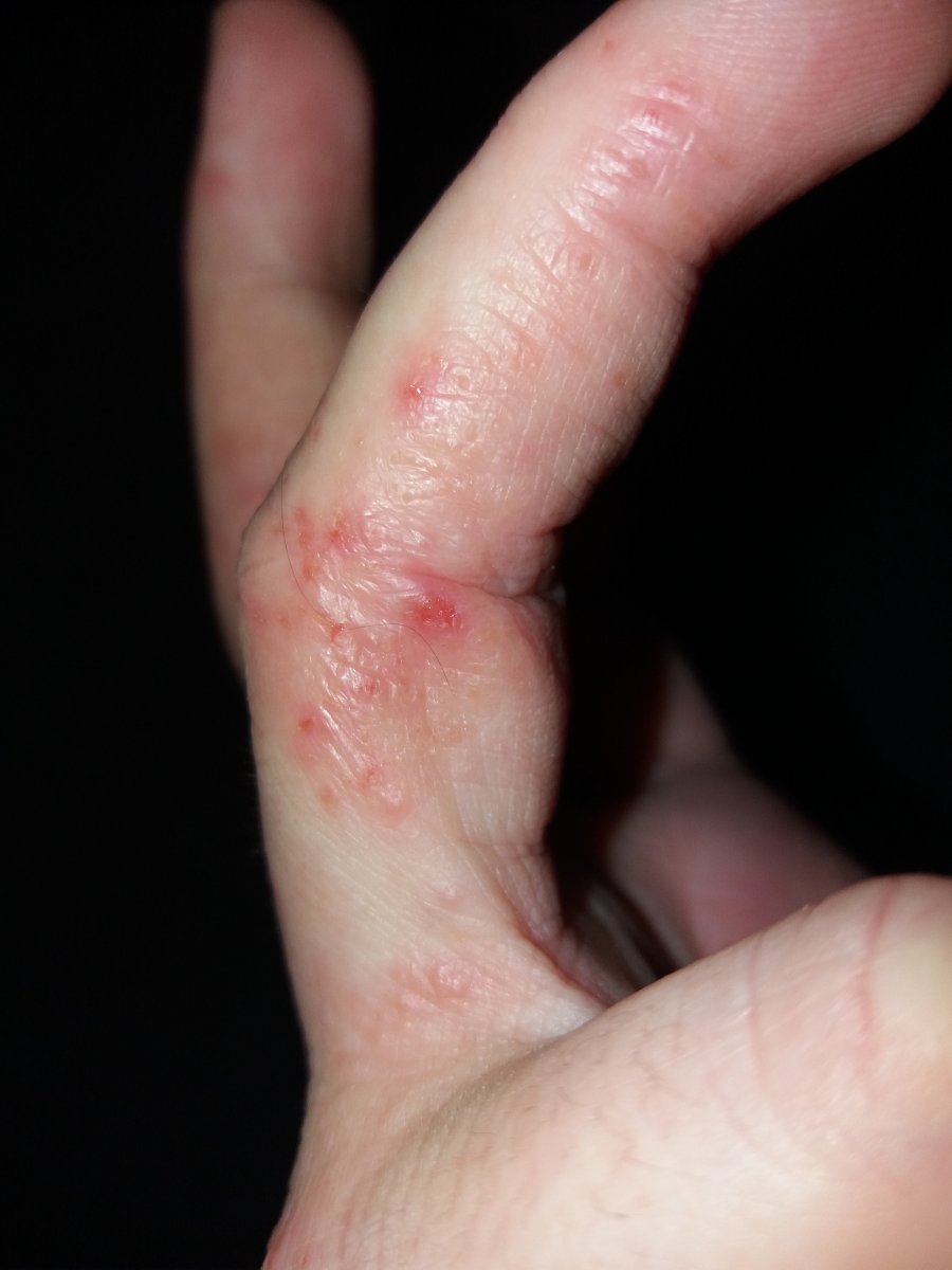 Veronica CerchiaraPartecipanteBuongiorno, la mia dermatite alle mani va e viene. Continuo con permanganato e PEG. Ieri sera la situazione era come in foto. Mi chiedevo se non fosse il caso di isolare la mano con del cotone a contatto col guanto in nitrile. Tra gli usi casalinghi che ne faccio e le pretese ridicole dei negozianti la mano ne esce sempre sudata e arrossata nei punti deboli.