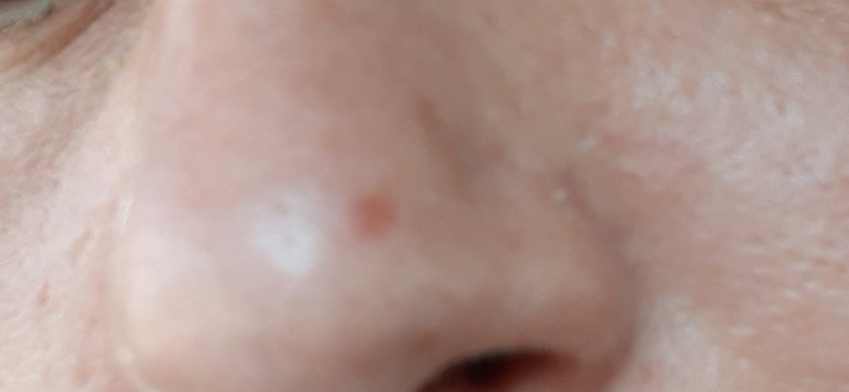 Buonasera ho questa macchiolina al naso da circa un anno nn è rialzata si è leggermente ingrandita e si è fatta un po più rossa nn ho dolore nn riesco a capire se è un brufolo o un neo o potrebbe essere altro ? Ogni tanto si toglie la pelle solo in quel punto