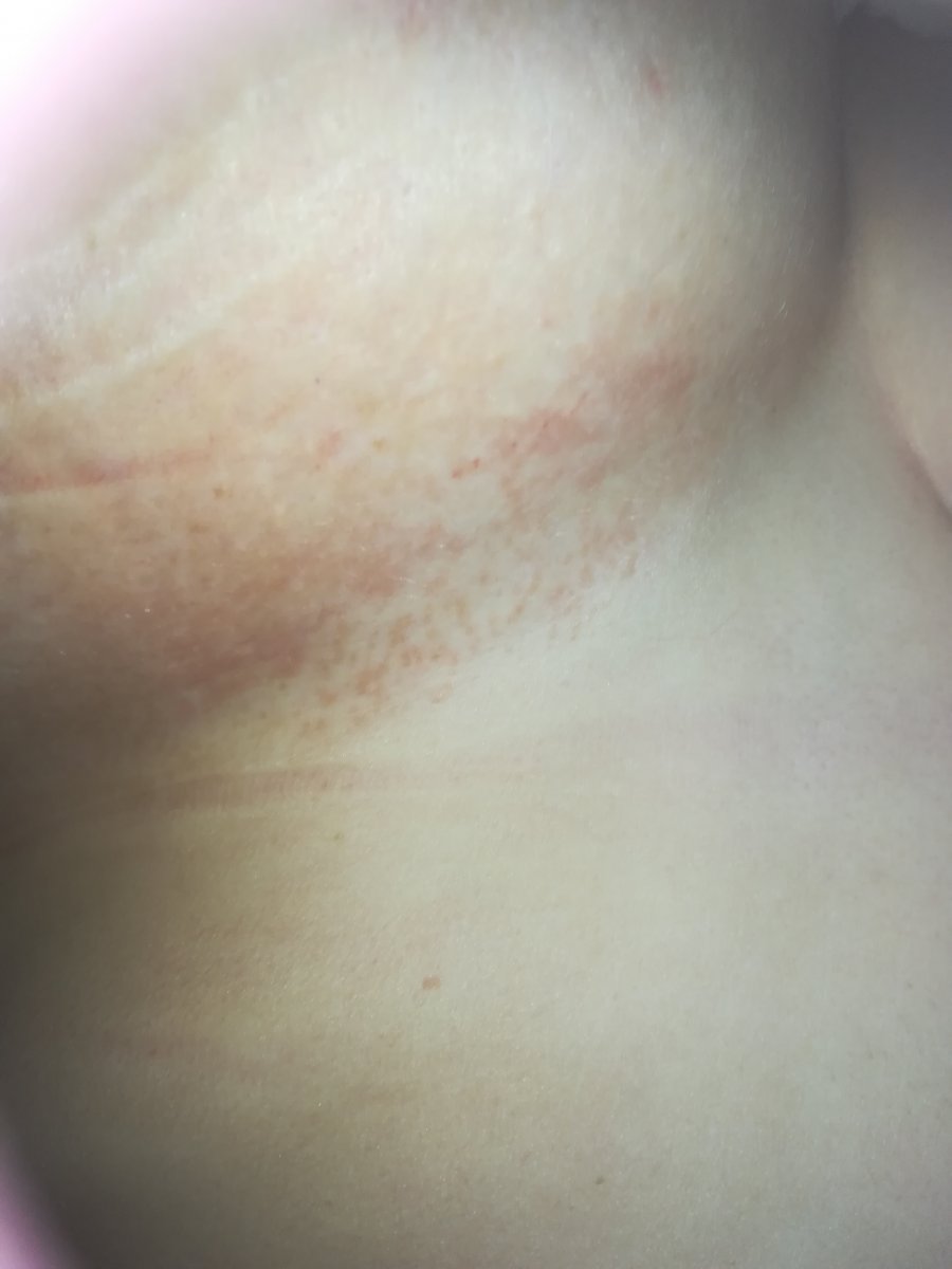 Patrizia83MembroSalve dottore ho lo stesso problema di queste ragazze, (credo) e iniziato con rossore e bruciore tra i due seni,poi più mettevo creme si allargava la macchia e bruciore pazzesco.io credo che sia stato un eccesso spruzzo di deodoranti,ho già avuto problemi di dermatiti.ma questa volta non riesco proprio a capire cosa fare.allego immagini