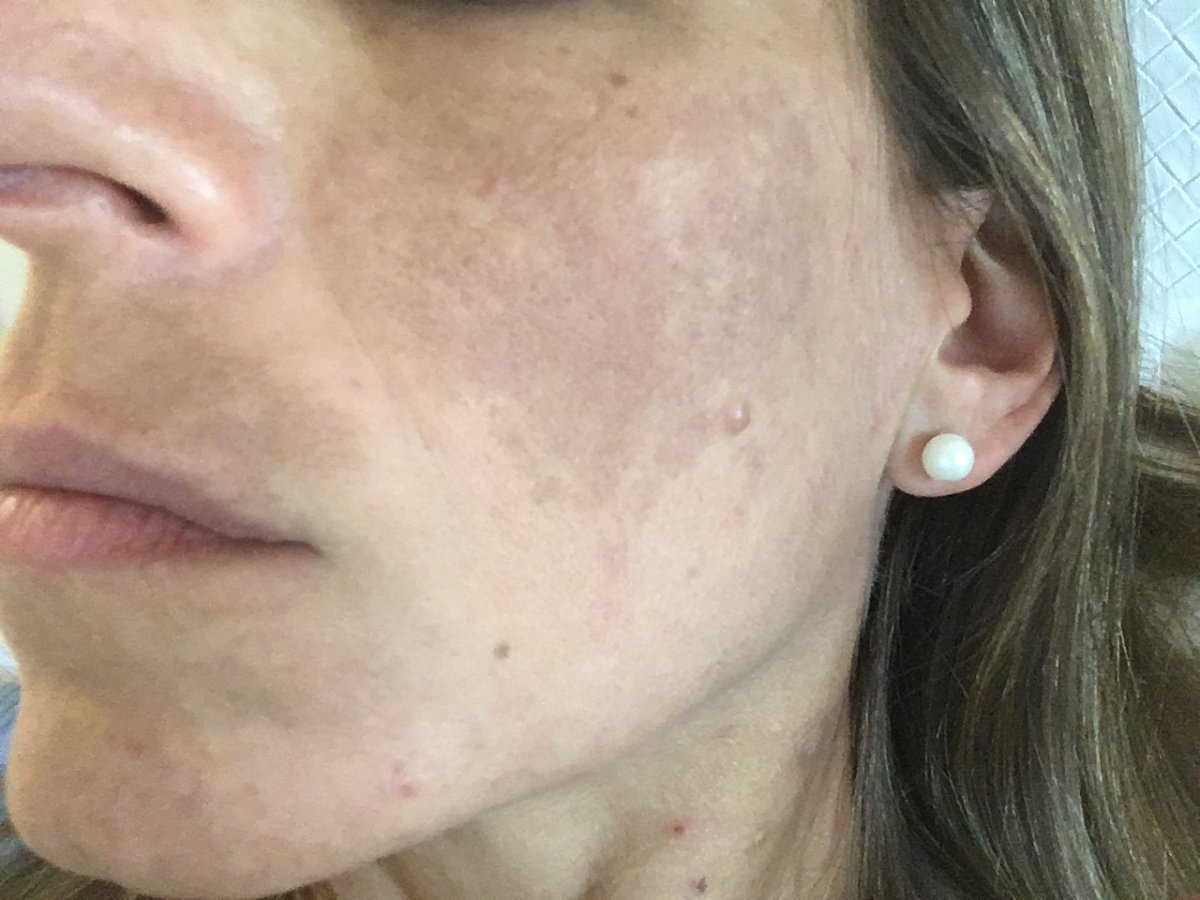 volevo un parere per il melasma sul viso che sembra peggiorato.  È da un paio d’anni che ho iniziato ad avere queste macchie che mi han detto essere melasma. Ho applicato una crema all’idrochinone ( su consiglio del dermatologo) e ho fatto un paio di trattamenti con il laser( ora non ricordo esattamente il nome preciso). Quest’inverno dopo l’applicazione della crema all’idrochinone con una percentuale piu alta sembrava fosse migliorata la cosa ma in primavera ho avuto anche una brutta reazione (come puo vedere dalle foto che le avevo inviato l’altra volta). Ora non sto piu mettendo nulla sul viso, uso solo pochissima acqua micellare quando devo struccare gli occhi e sto usando bass lavante della Most. Ho iniziato a fare il micropeeling combinato da un mese e mezzo( glicosal+ Airol) ma mi sembra che la situazione stia peggiorando e che le macchie siano piu in evidenza e ce ne siano di addirittura di nuove come attorno alla bocca e sulla guancia sembra estendersi. È normale? Grazie mille per la disponibilità. Allego le foto anche se realmente sono molto piu visibili.CE70F92B-BA58-4D98-8428-326252F07EF2.thumb.jpeg.ac7f1544d9c156cd29ea8a09555e79b5.jpeg