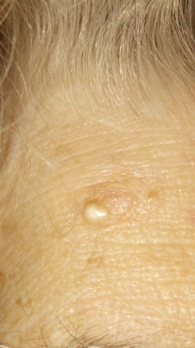 Gentili, Vi chiedo un parere circa una strana bolla bianca comparsa sulla fronte di mia suocera. Non le dà fastidi, ma accanto alla medesima da un lato c’è anche un piccolissimo avvallamento. Cosa potrebbe essere e che si può fare? Grazie infinite per l’attenzione.