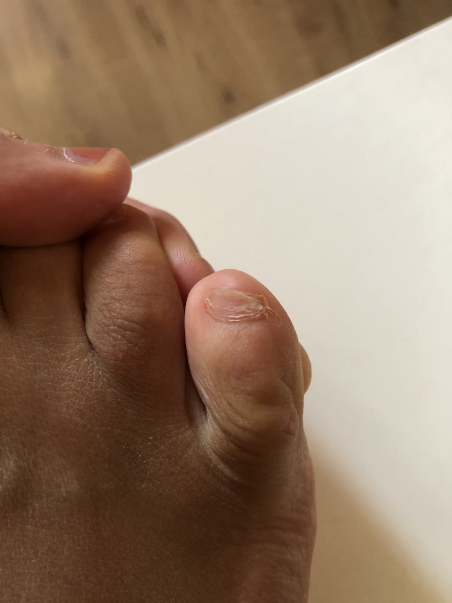 Ne approfitto per mostrare anche l’altro alluce e uno dei mignoli. Sull’alluce c’è una macchia bianca simile a come era iniziato il tutto sull’altro alluce, sul mignolo invece noto una sorta di ispessimento quando taglio l’unghia, sopratutto in alto a dx dove come vede è più corta. Secondo lei vale la pena che tratti con la 2 S anche queste 2?Grazie infinte, spero proprio di risolvere perché sono anni che ci sto dietro senza grandi risultati – ovviamente, essendo stata mal seguita purtroppo.