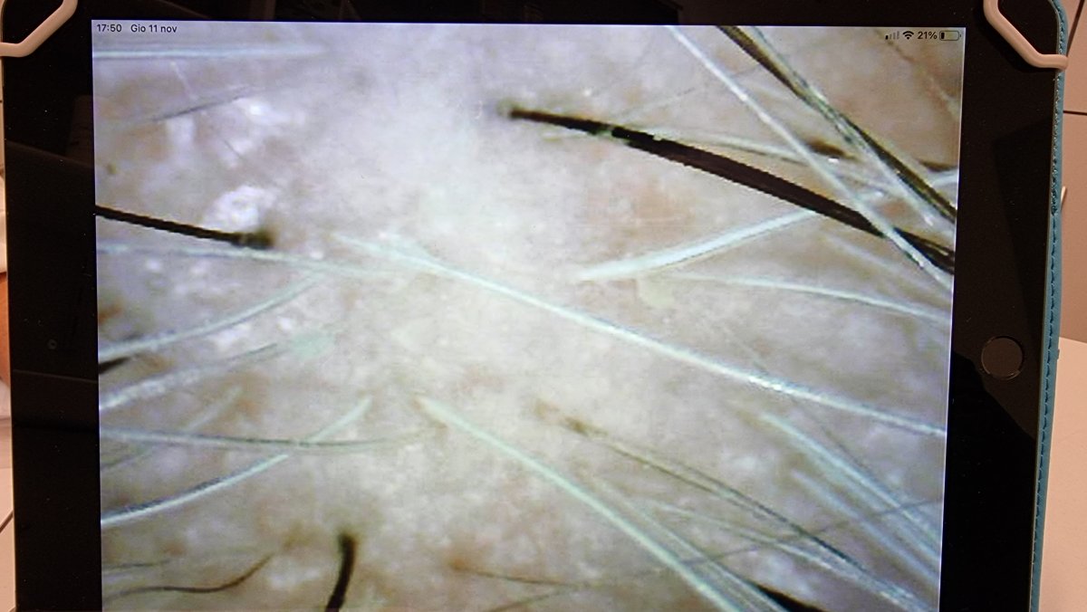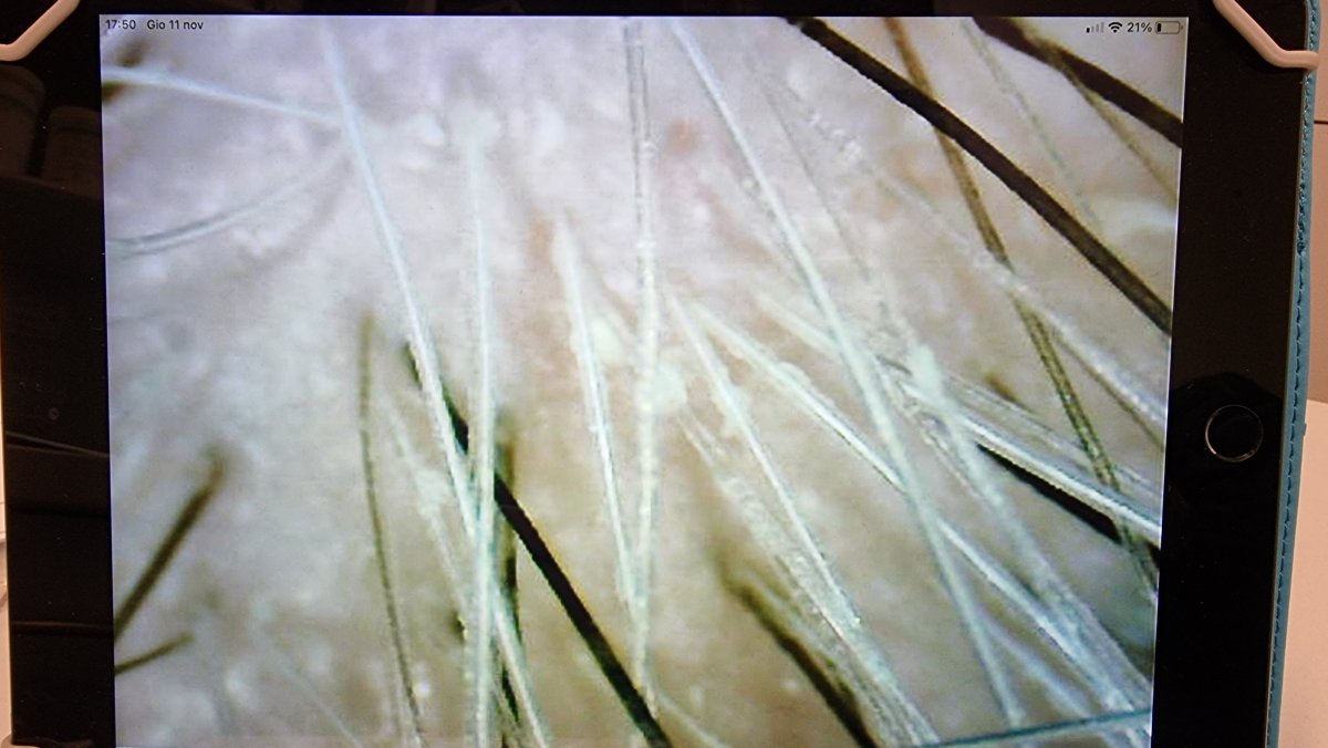Dalle foto lei può vedere la situazione della cute e della radice del capello, sono le foto su cui la dermatologa ha fatto la sua diagnosi, me le ha date per un confronto alla prossima visita.