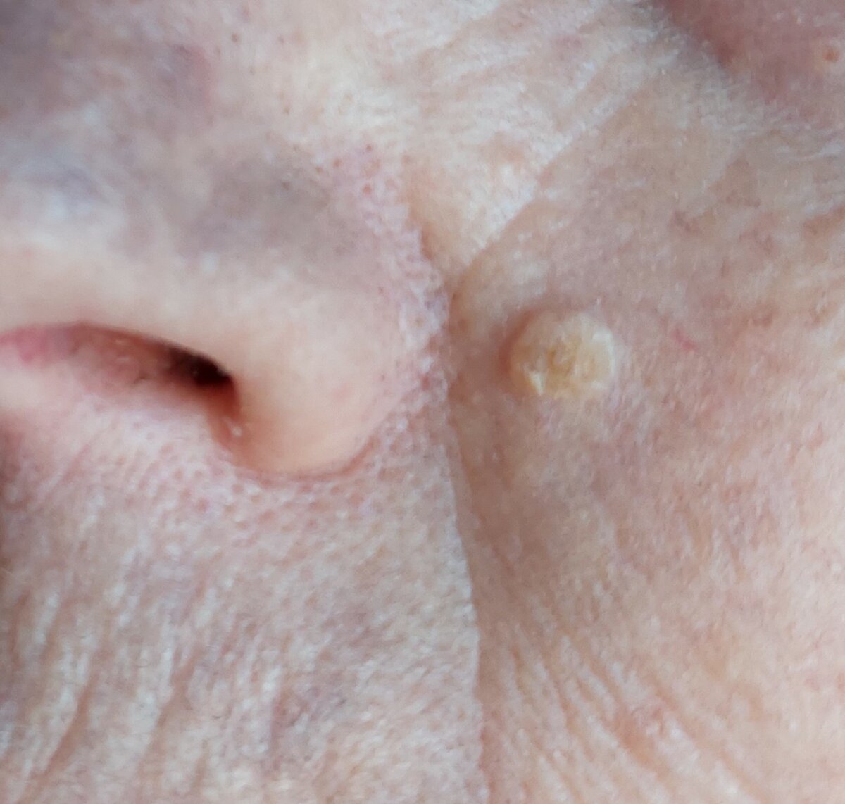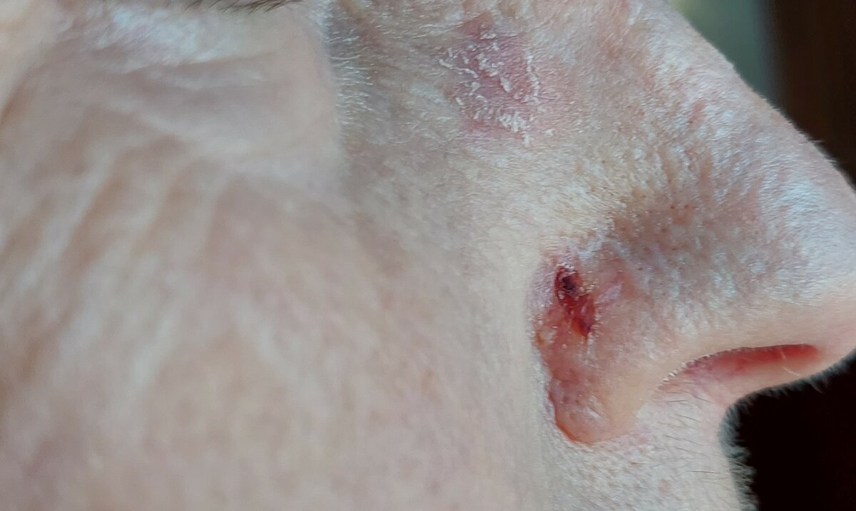 Ultimamente è comparsa anche un’escrescenza a sinistra del naso mentre sul lato destro ha una ferita che non guarisce mai: la crosta si forma e cade ma poi si riapre…