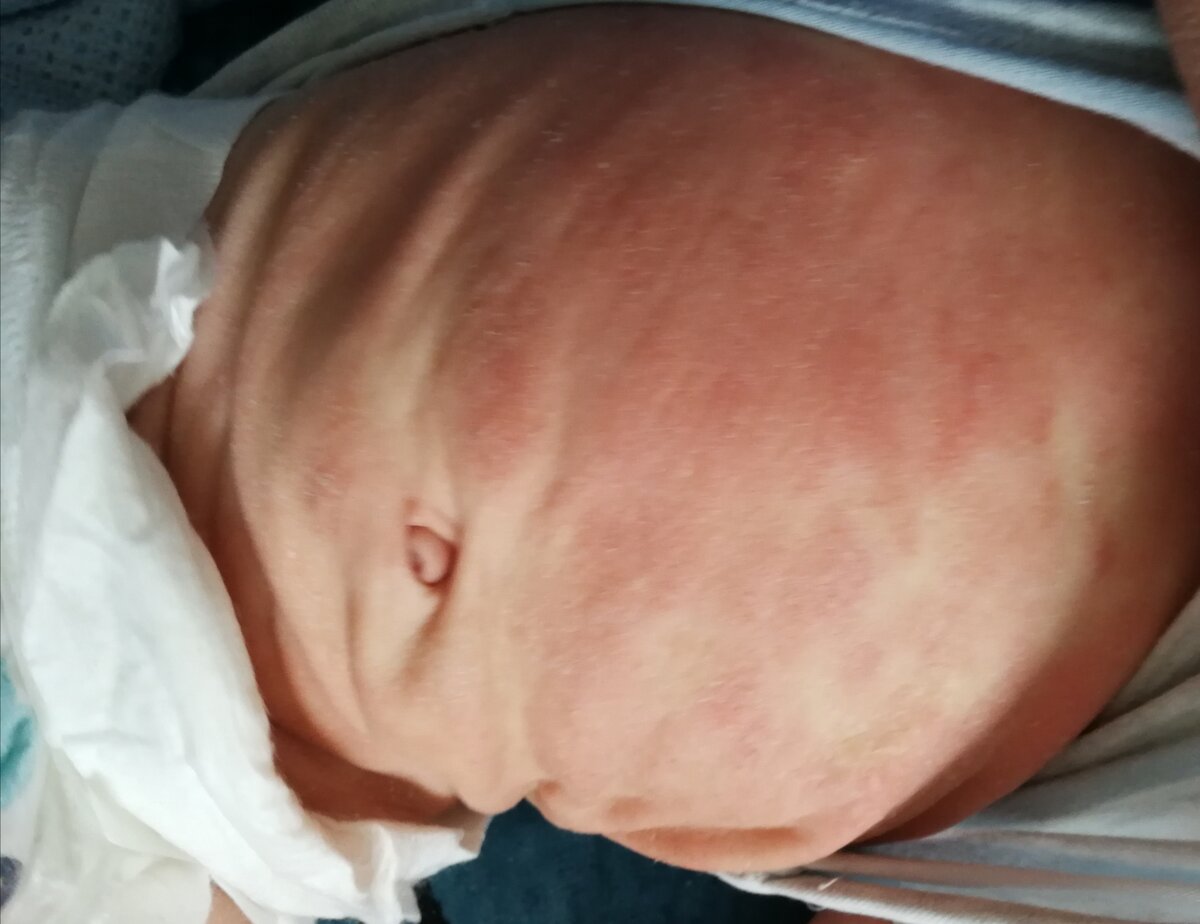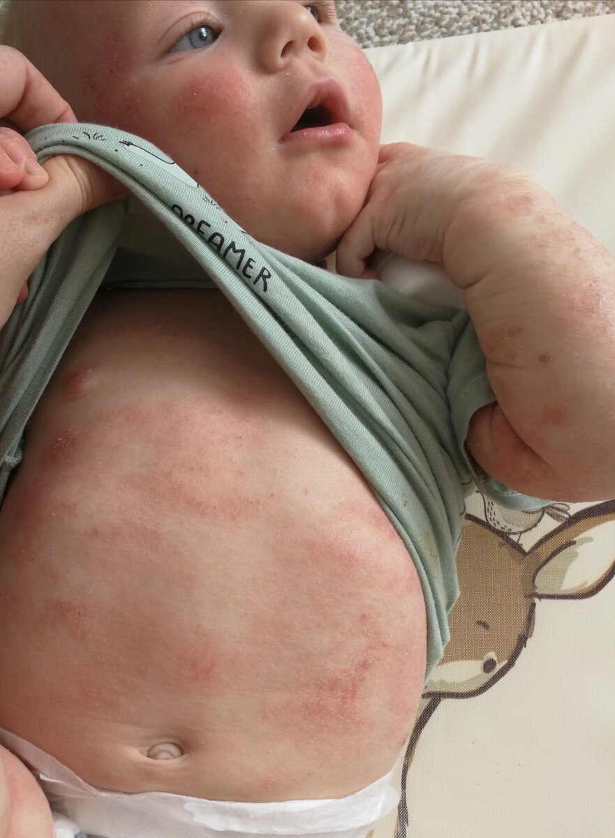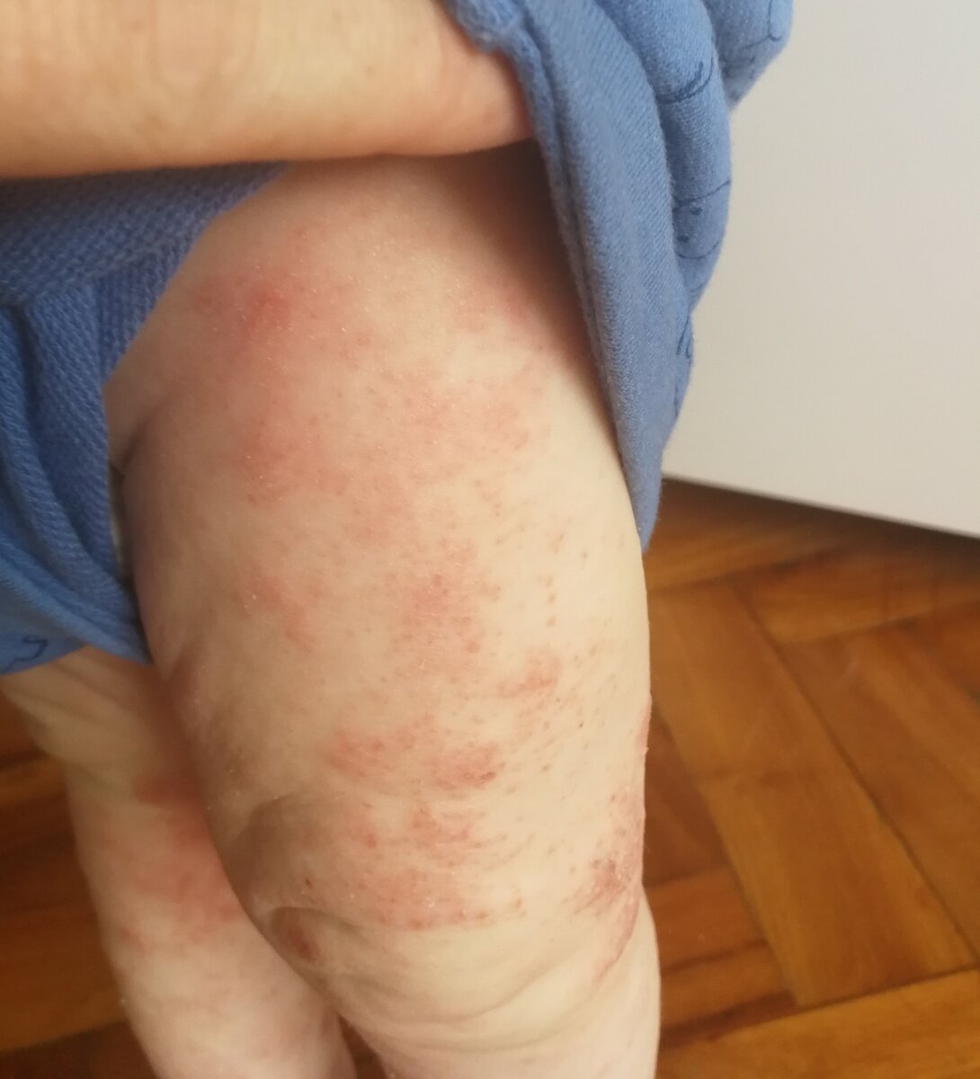 All’incavo delle sue braccia e gambe sono estremamente rosse, con vesciche pruriginose che si gratta inevitabilmente.
