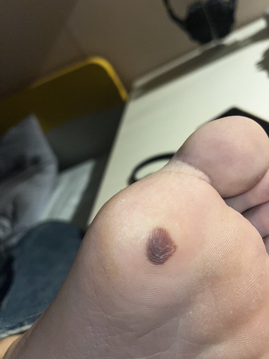 da circa un mese (quando l’ho scoperta), ho una macchia sotto al piede di colore rosso scuro. (si trova in un punto in cui la pelle è più spessa).La macchia è sotto pelle, ho pensato fosse un ematoma ma è rimasto uguale.
