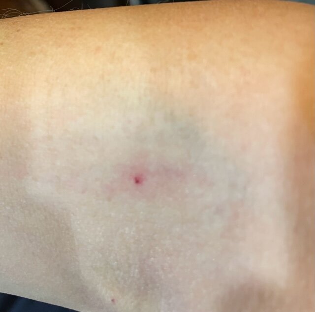 adesso si vedono solo segni di grattamento causati da prurito forse per cute troppo secca, sospndi i lavaggi, applica la sera una punta minima di MOST Unguento Emolliente Estremo con molto massaggio.