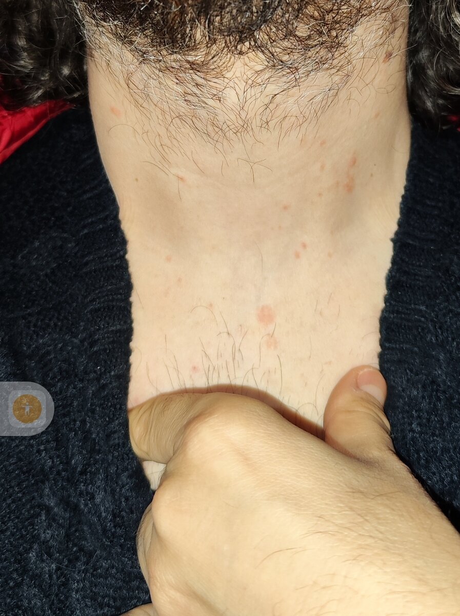 Aggiungo oltre al collo ci sono macchioline vicino le ascelle e addome inferiore