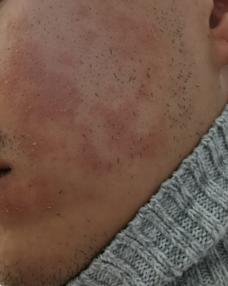 Buonasera e buone festività. Non applico assolutamente niente sul mio viso da quando son nato ad oggi, ed ora la situazione sembra anche esser peggiorata a tal punto da sentire addirittura bruciare:
