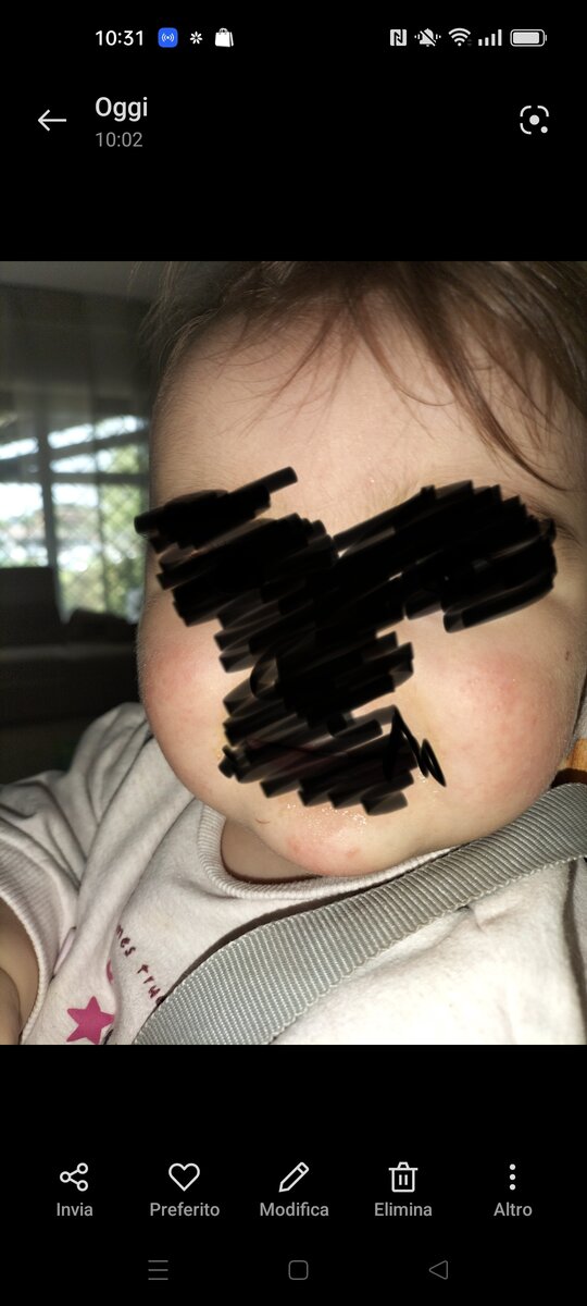 da quando abbiamo iniziato lo svezzamento sono comparsi su guance e mento di mia figlia (che ora ha 12 mesi) arrossamenti sparsi e brufoletti. Non riesco a individuare un alimento che peggiori visibilmente la situazione, ma la cosa ha avuto inizio poco dopo lo svezzamento. Lavo il viso di mia figlia solo con acqua fresca, sto attenta ad asciugare bene e ogni tanto applico una cremina della hipp per neonati in modo da idratare la pelle, ma sia che la applichi o meno non vedo grandi differenze. Secondo il pediatra potrebbe essere colpa del latte in formula, ma quando la bambina era alimentata solo con il latte non aveva questi brufoletti. Ho anche provato a trattarla con una crema prescritta dal pediatra: Uriage della Xemose, ma nessun miglioramento. Ho solo notato che durante un periodo in cui era influenzata e mangiava molto meno i brufoletti erano migliorati tanto. Ho provato anche a togliere il glutine per un po’, ma anche con la farina di riso o mais e tapioca i brufoletti continuavano ad essere presenti. Secondo lei è un problema alimentare? Come dovrei trattare questi arrossamenti? Le allego foto.