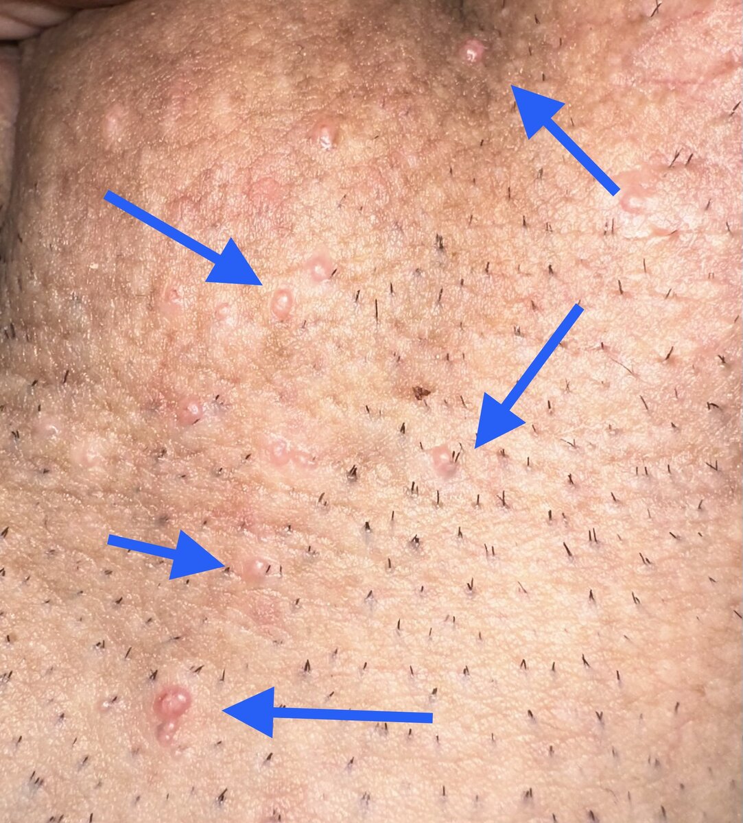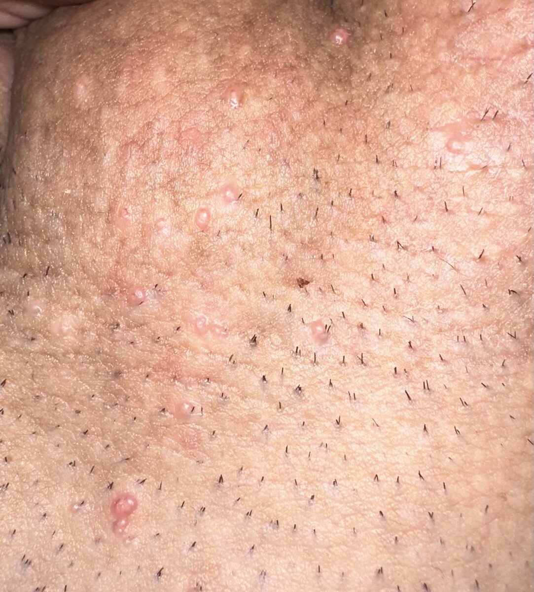 Questa volta ho notato che sotto al pelo rimosso (nella zona pube e pene lato pube) c’erano dei piccoli ponfi/ brufoli/bollicine che ritengo non siamo dovuti alla depilazione e/o a irritazione a essa dovuta.