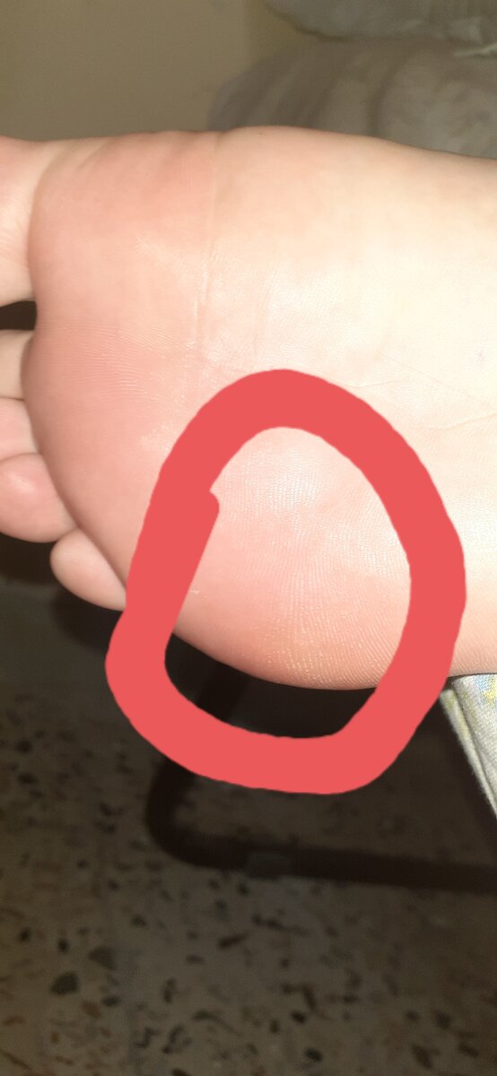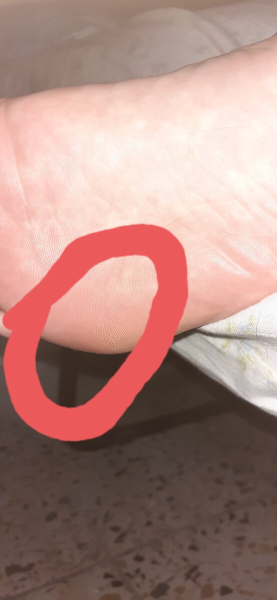 ValeriMembroBuongiorno caro dottore mi scuso volevo farle un altra domanda che riguarda la sotto pianta del piede.Vede ho cerchiato in rosso dove si presenzia una specie di lieve pelle secca morta,color tipo sul giallo.Premetto che in quel punto avevo una verruca risolta con i suoi metodi guida,temo che si ritratti ancora di verruca sento la parte sensibile.Puoi dirmi se è ancora verruca o cosa?Grazie !!!