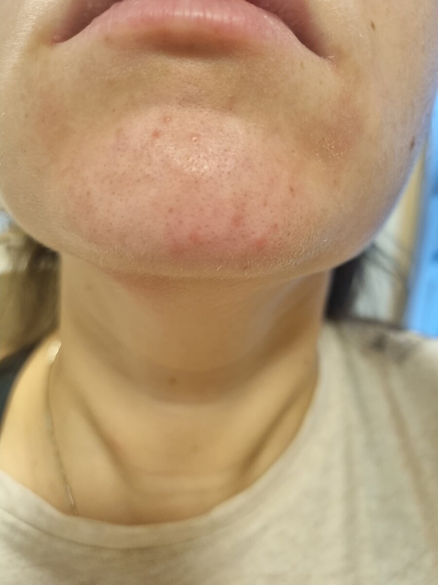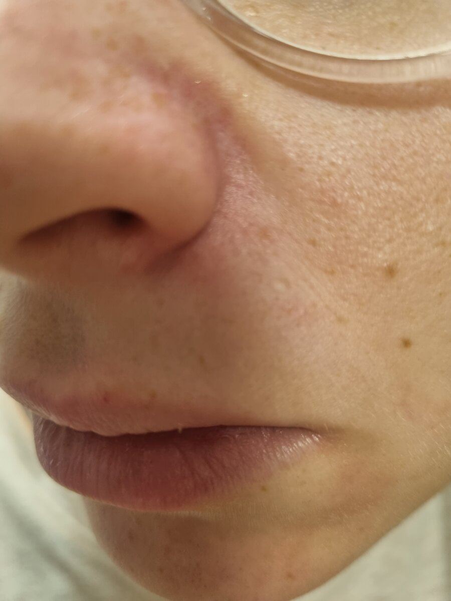 passa di meno sul mento e stai lontana dal naso quando fai la frizione con Glicosal