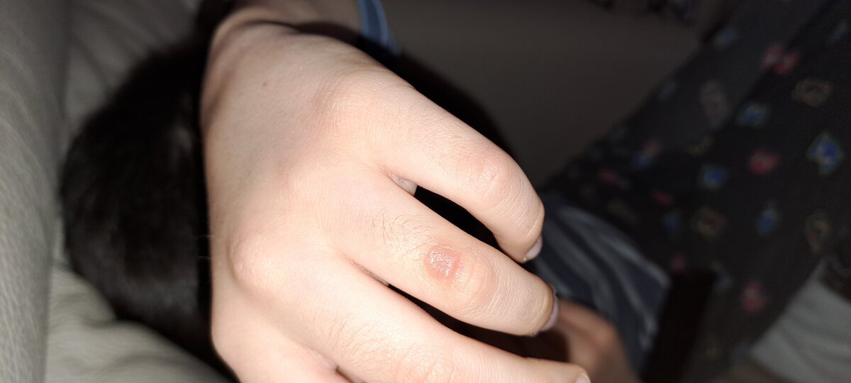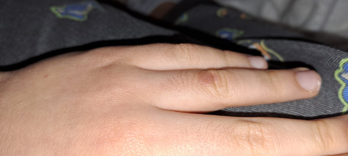 Vorrei chiederle di questa formazione sul dito di mio figlio di quasi 8 anni. Mi sono accorta per caso, chiesto e dice di essersi grattato qualche giorno fa. Di cosa si tratta? È contagiosa?