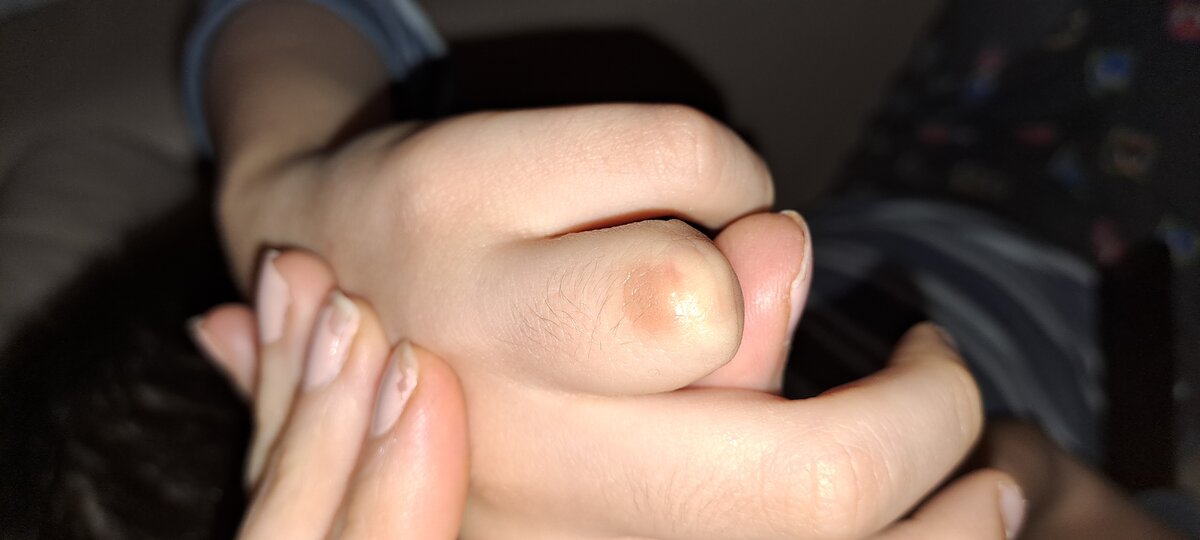 Buonasera, ancora il dito si presenta così. Dice di avere fastidio e lo gratta. Ma non capisco se ora c’e infezione, considerato il fastidio. Non è guarita da sola.