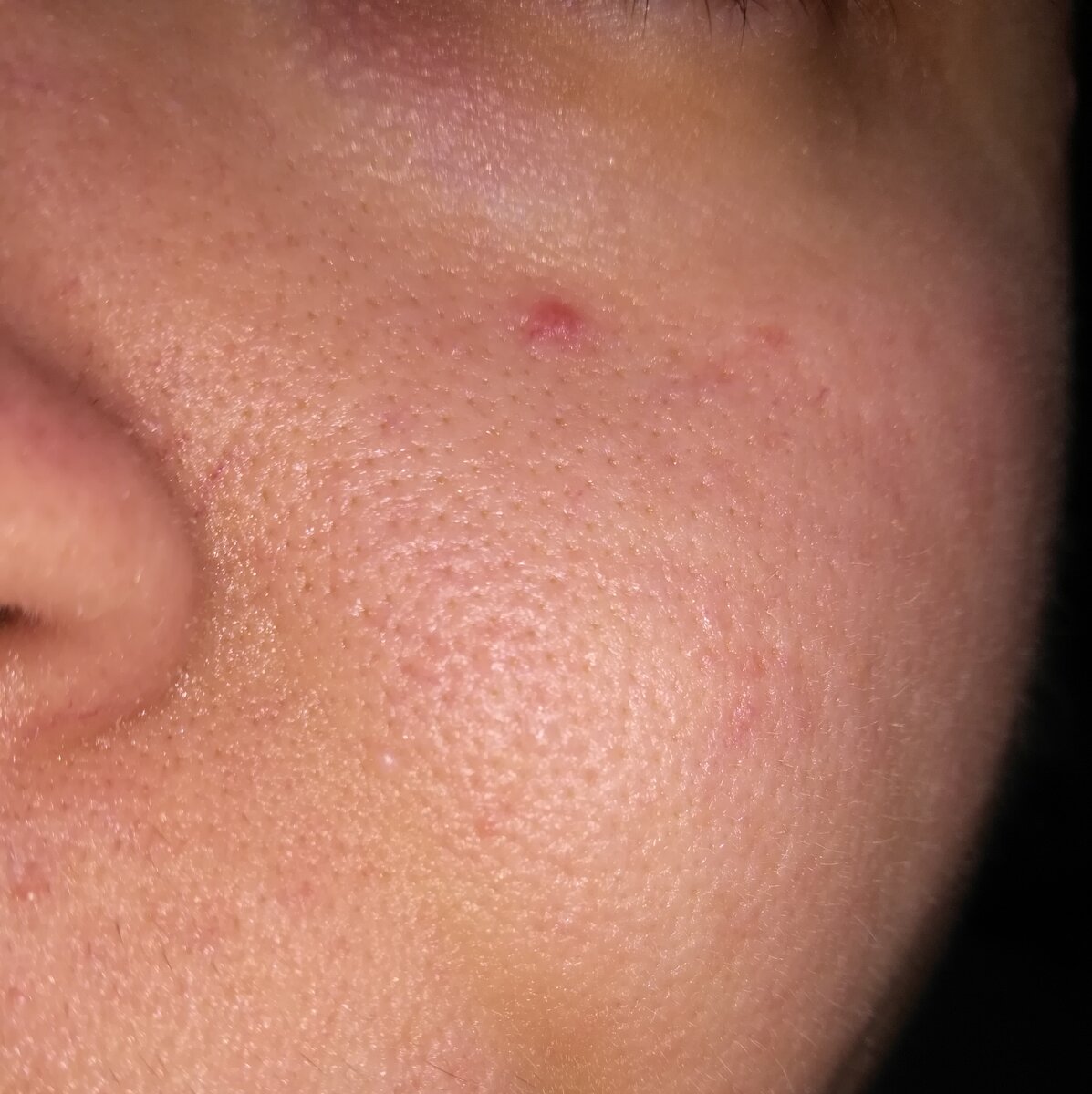 Salve, le scrivo per sottoporre alla sua attenzione questa piccola chiazza rossa sulla guancia sinistra. Lunedì mattina al risveglio ho notato questa chiazza, non prude né brucia. Premetto che sono una persona che ha una pelle grassa ma particolarmente sensibile ed iper-reattiva, motivo per cui non applico nulla sulla pelle e il giorno prima non mi sono esposta al sole. Ad oggi le dimensioni della chiazza non sono diminuite. Mi chiedo quindi cosa possa essere. La ringrazio!
