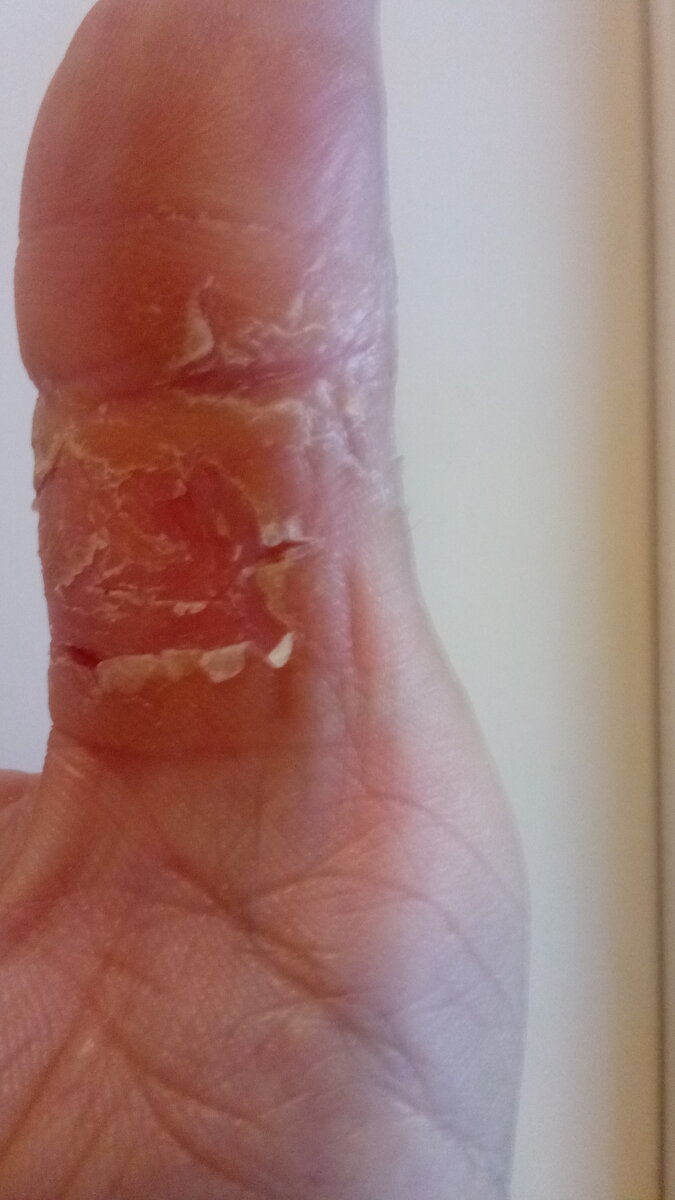 il giorno dopo che mi ha risposto non sono stato attento e ho fatto una doccia che mi ha causato una grande desquamazione, dopo di che ho eliminato l’acqua e messo sempre guanti di nitrile e peg e da subito ho sentito la pelle più forte e senza bruciore, non ha più fessurato in profondita.