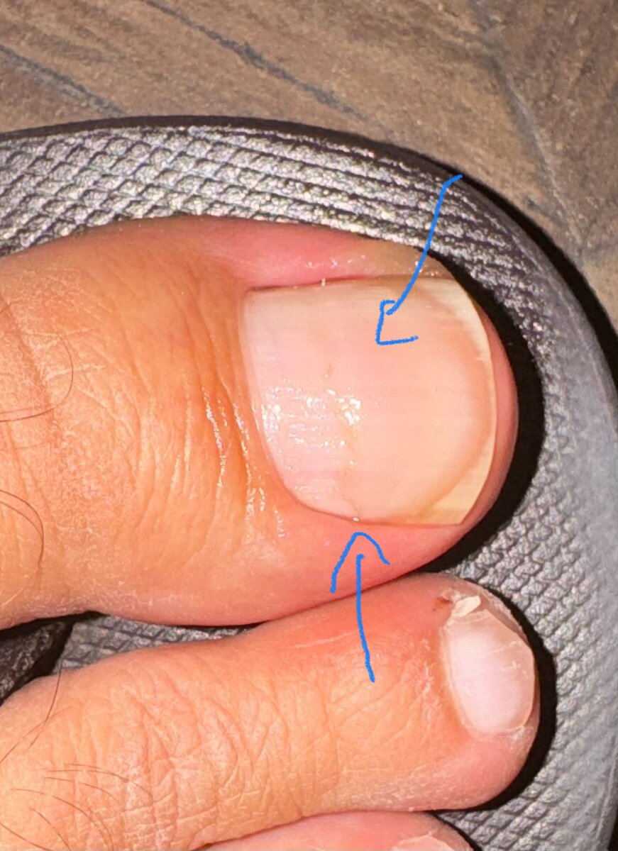 Salve gentile dottore tornando dalle vacanze mi dono accorto che l’unghia del alluce dx ha questo strano aspetto che vede in foto, è un fungo? Nel caso cosa devo fare? Grazie mille