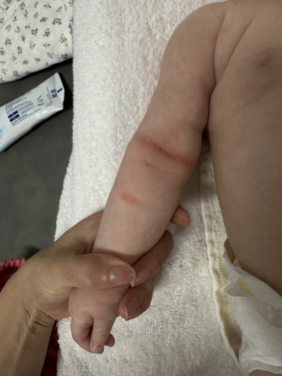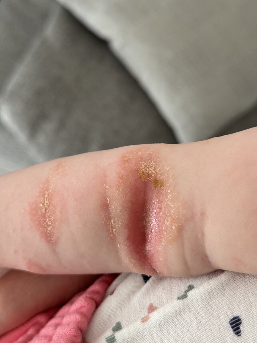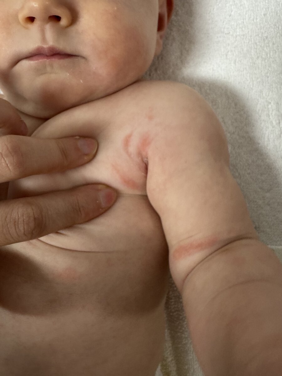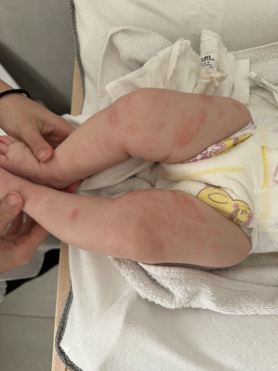 è da qualche settimana invece che presenta una dermatite (aveva pelle secca e qualche macchia) diagnosticata dalla pediatra che mi ha consigliato di utilizzare Lipikar Baume de la Roche posay e lipikar huile lavante per il bagnetto. E per un sospetto reflusso uno sciroppo con aroma alla fragola ma dopo averli utilizzati ho sospeso tutto quanto perché la situazione della pelle è peggiorata, non so se per via dello sciroppo o delle creme ma era diventata rossa a chiazze dove prima c’era solo secchezza.