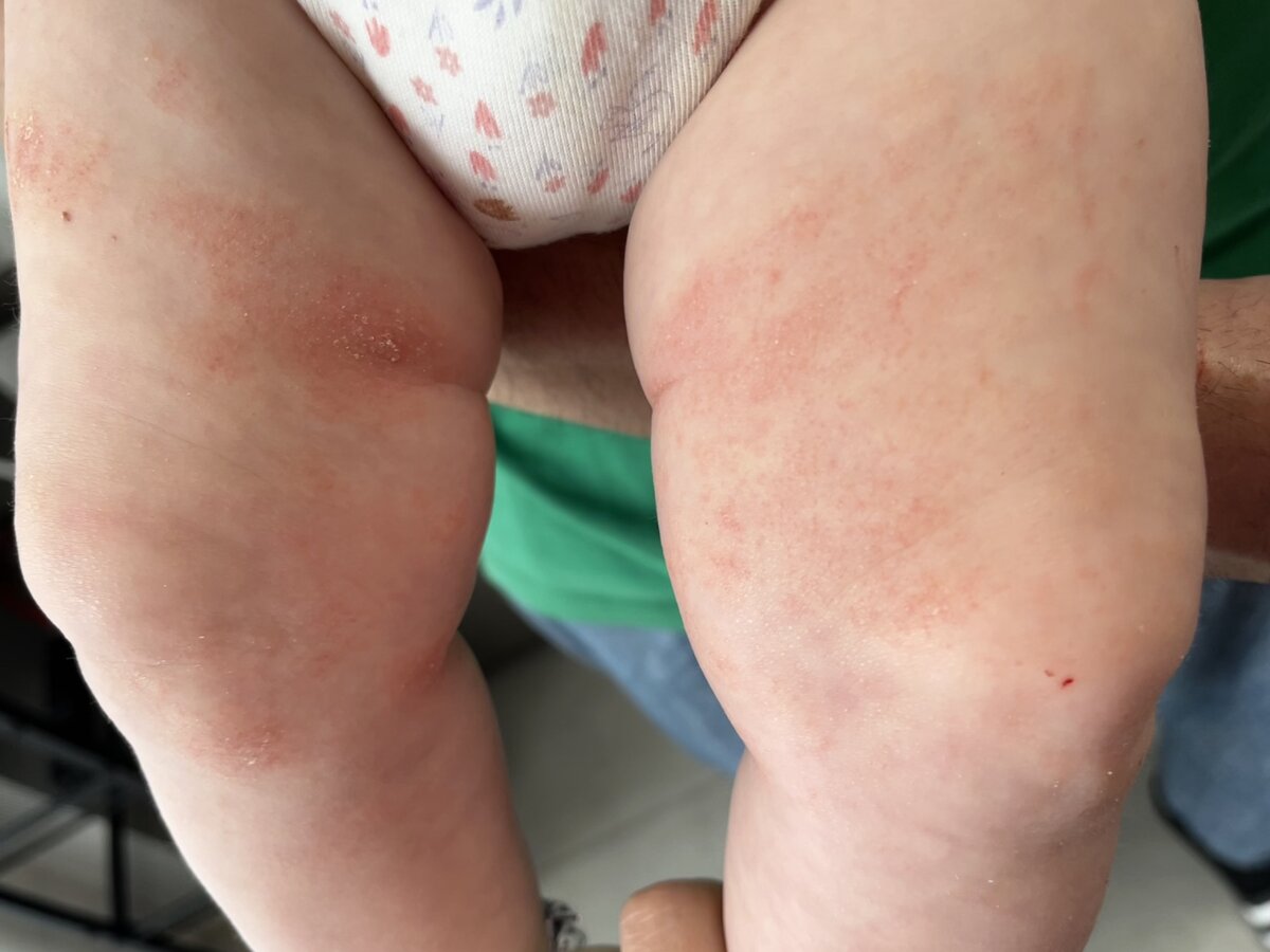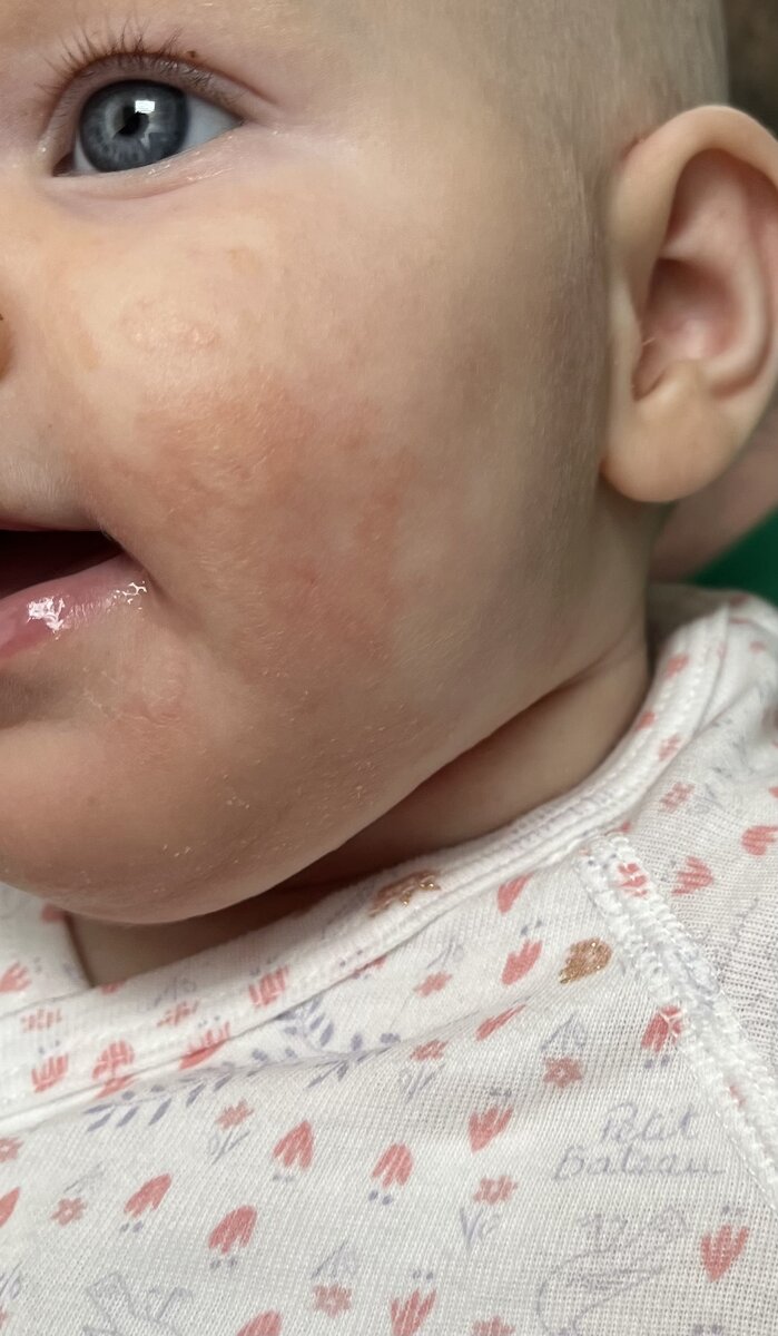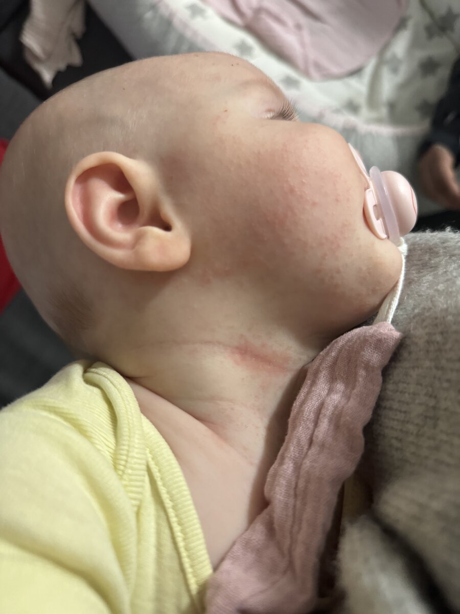 in questi giorni ha iniziato uno sfogo su mento e guancia che prima non aveva, sembra quasi acne, si tratta sempre di DA? Per ora non ho applicato niente sul viso cerco solo di asciugarla bene dopo l’allattamento. Potrebbe inoltre la vaccinazione somministrata i giorni scorsi peggiorare la dermatite in generale?
