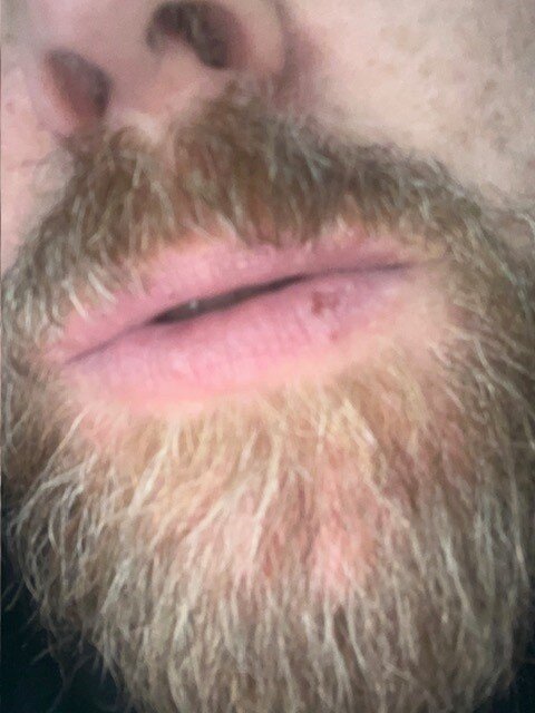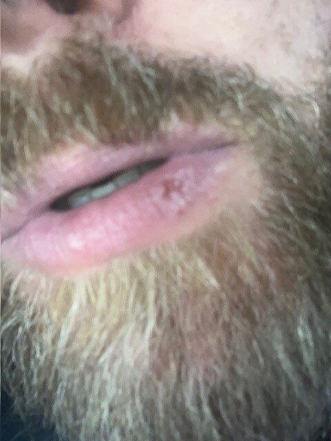 Ora la ferita per l’esame istologico è guarita ma come potete vedere da foto mi rimane sempre bordo labbra arrossato , sia inferiore che superiore screpolato e che prude (specialmente dopo i pasti)