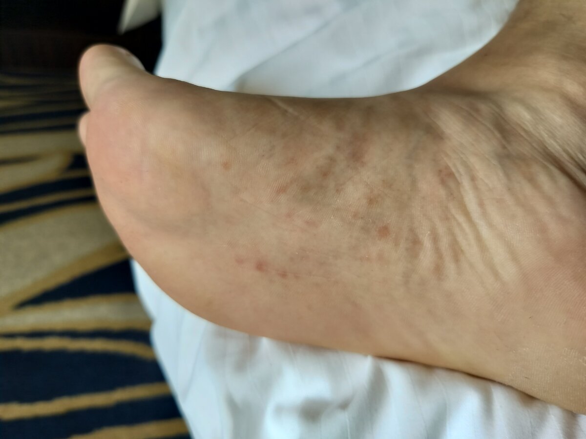 Michele1234PartecipanteSalve, scrivo perché mi trovo in una situazione che non riesco a spiegare e cercando online non ho trovato nulla di simile. Mi trovo ad Abu Dhabi per lavoro e alloggio in un hotel. Nonostante sia quasi dicembre, il clima è ancora molto caldo. Purtroppo ho dimenticato le pantofole e ho camminato scalzo sulla moquette della stanza e nella doccia, e ho anche fatto un bagno nella vasca. Dopo un paio di giorni, ho lavorato all’aperto sotto il sole e, rientrato in hotel, ho notato alcune macchie sotto i piedi: sono in rilievo, dolorose al tatto e alcune cicatrici (di circa 3 mesi fa) si sono gonfiate e provocano un leggero prurito.