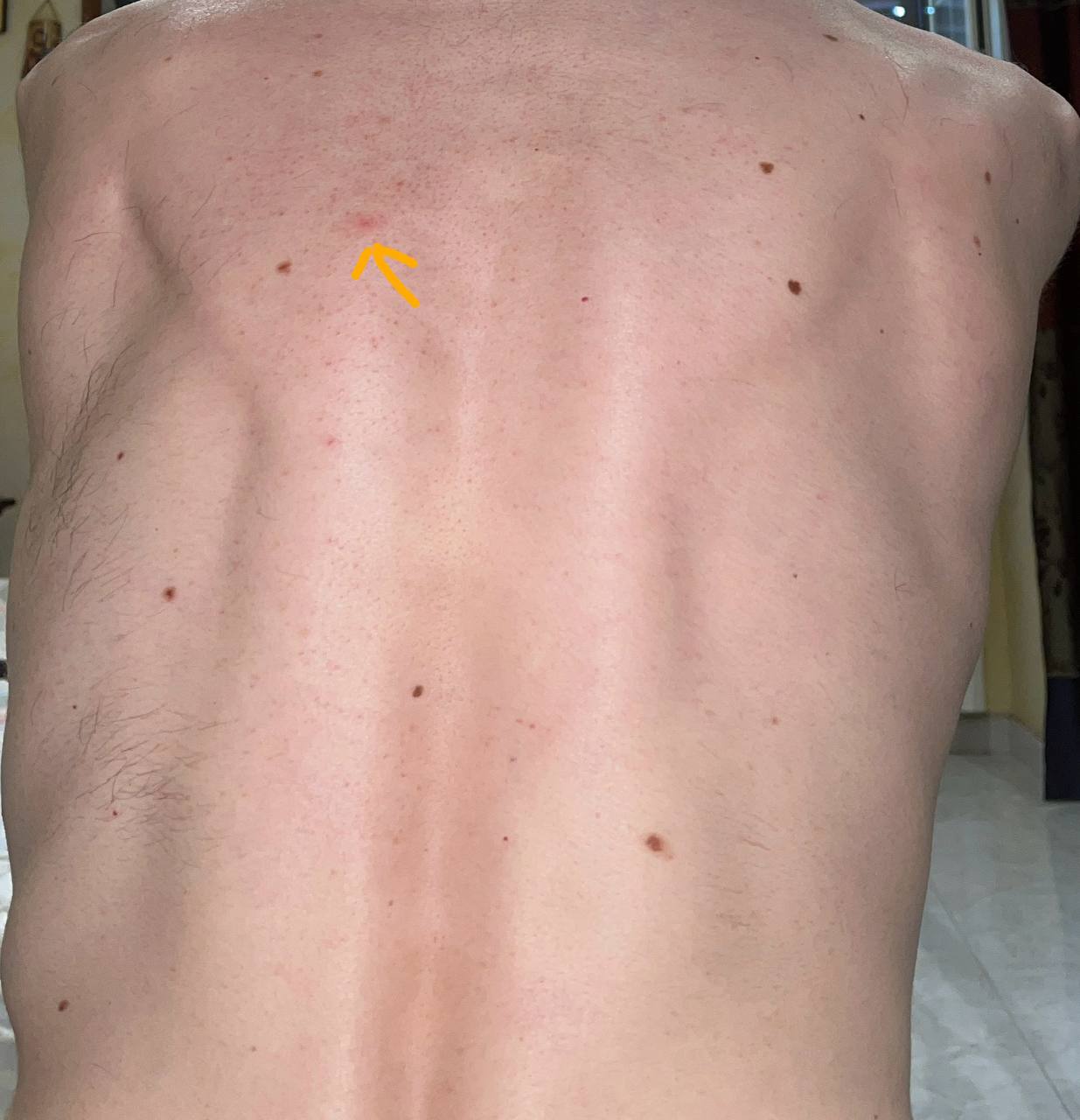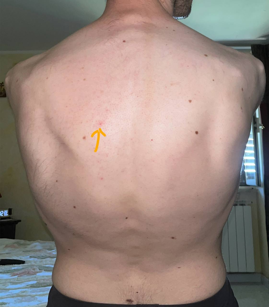 Da qualche giorno però che noto questa bolla sulla schiena, per caso c’è da preoccuparsi con l’esordio di rash cutaneo da sifilide secondaria o altre MST ? (da questo rapporto, fellatio ricevuto coperto, sono passati ad oggi 5 mesi)