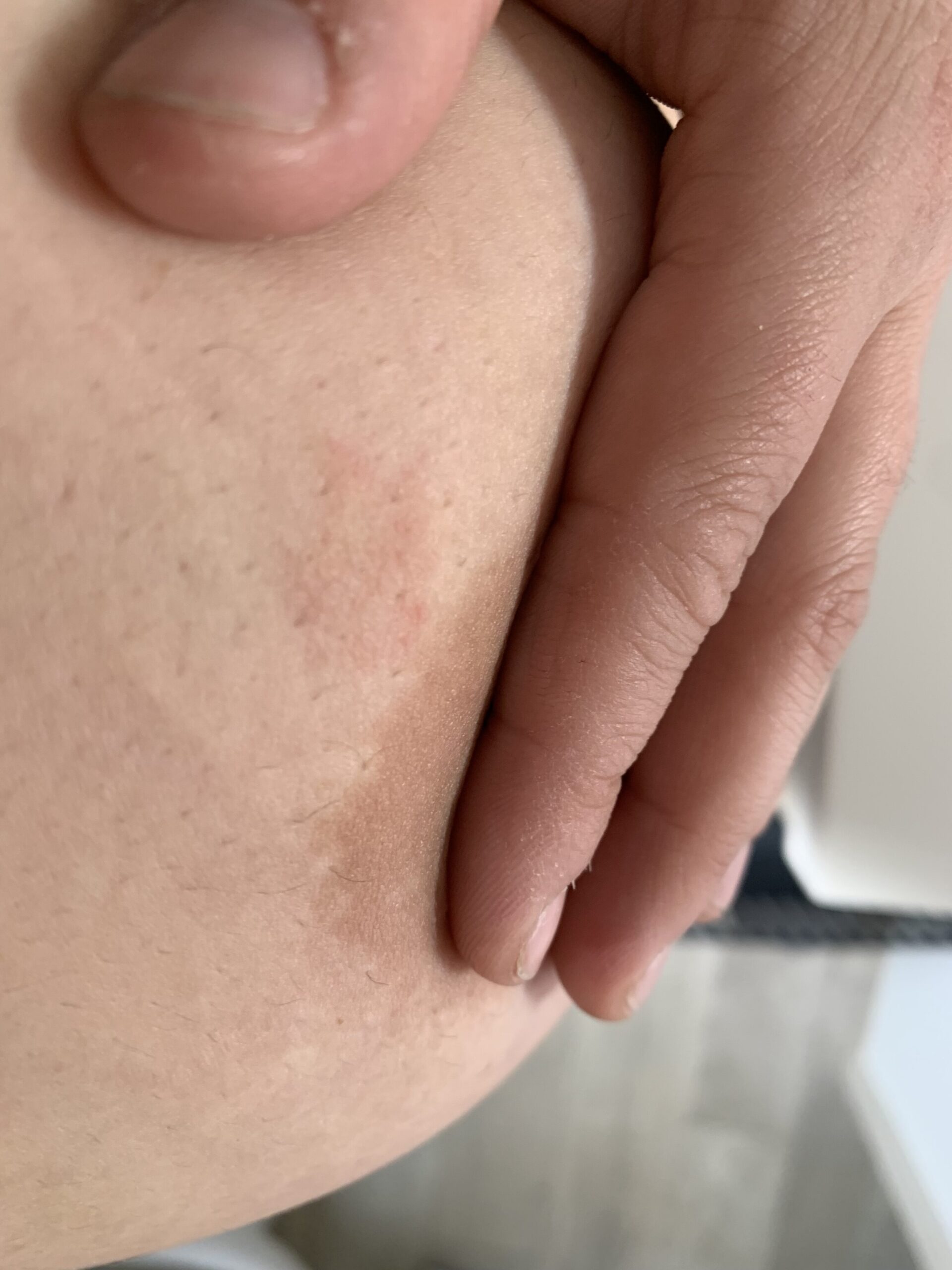 Chiazze aspecifiche di cute secca, non bagnare la parte, la sera una punta di MOST Crema Lenitiva.