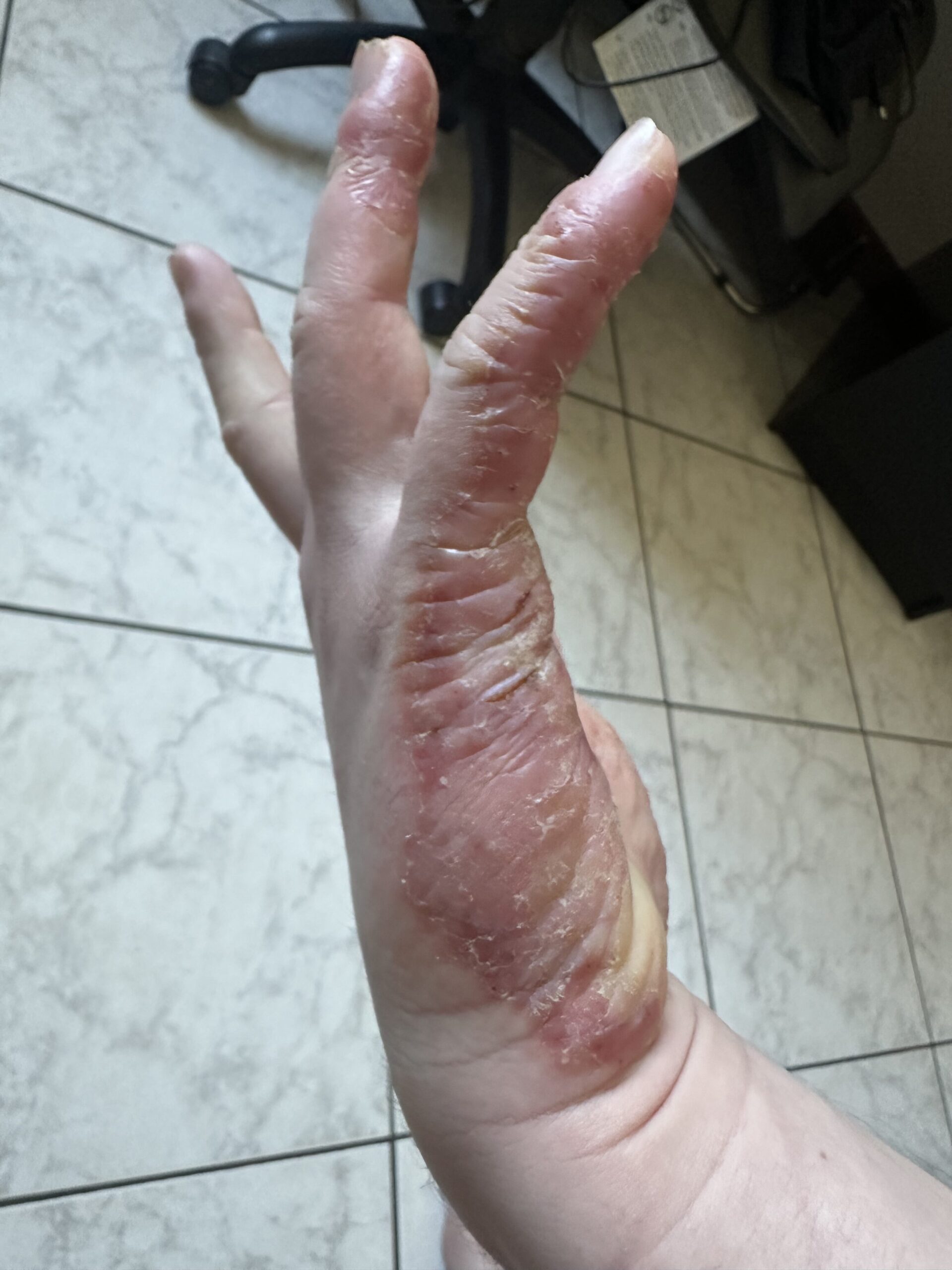 manu_PartecipanteBuongiorno, volevo aggiornarla sul fatto che seppur la pelle non si sia ancora completamente rifatta ho visto che su alcune dita si sono formate nuove bollicine….