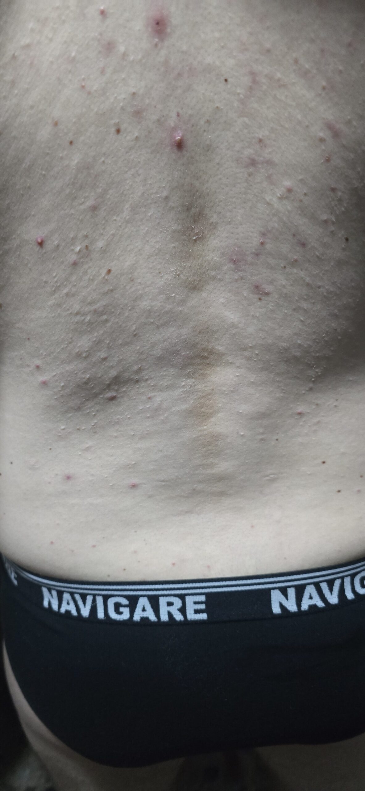 Salve. Mio fratello presenta questa macchia scura (tra il marrone chiaro e il giallo) lungo la parte bassa della spina dorsale, da come potete vedere in foto (una è una foto, le altre sono degli screen).