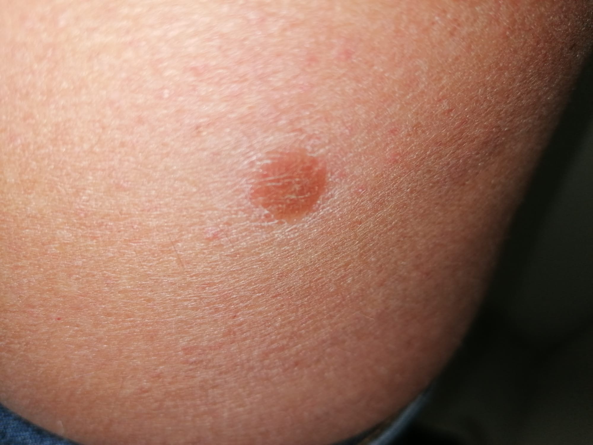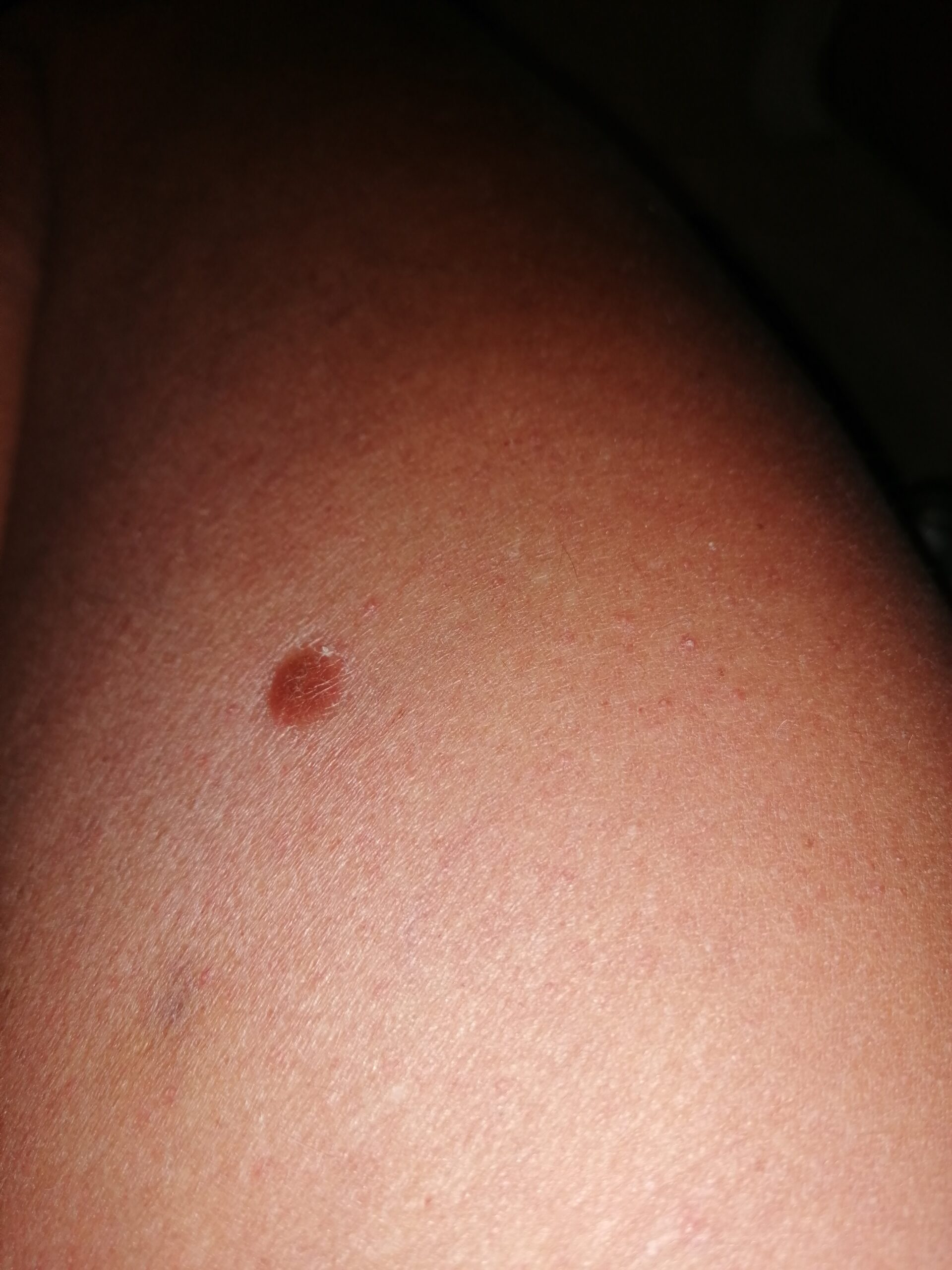 Mi è apparso da circa un mese questa macchia che sembra in continua evoluzione, sia come misure e colore sulla coscia, di cosa potrebbe trattarsi?