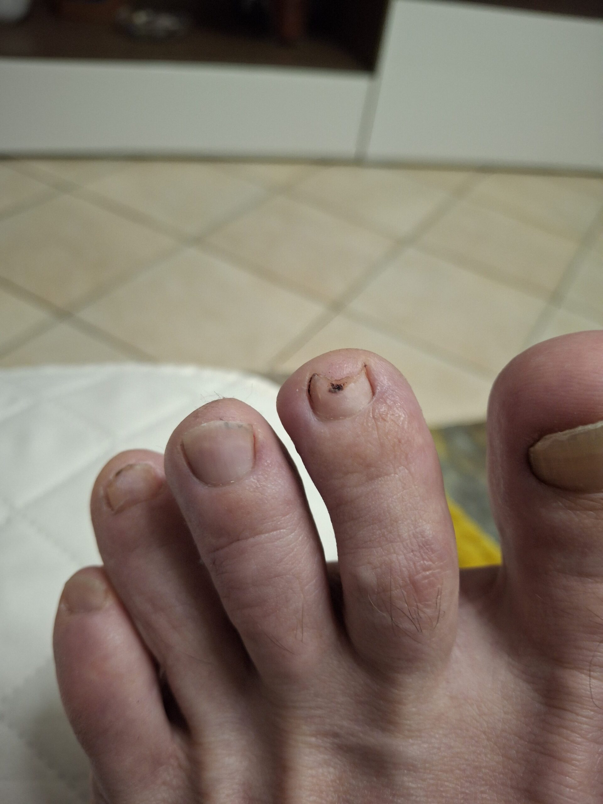 Buonasera, è qualche settimana che si è presentata questa macchia sull’unghia,il podologo limando ha creato un sanguinamento che si é protratto sino al giorno dopo,cosa può essere,grazie