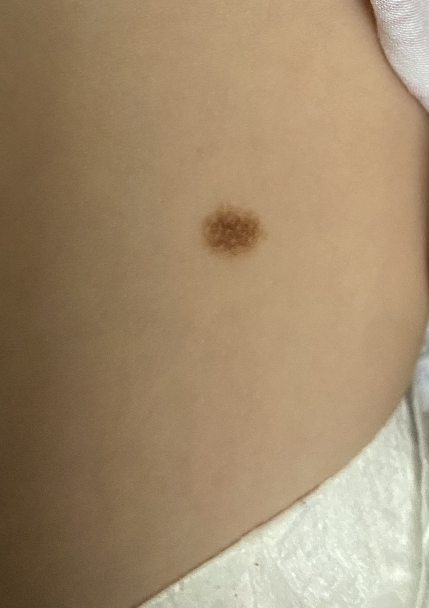 Buongiorno, il bambino presenta dalla nascita questa macchia piatta. Volevo chiedere di cosa si tratta?
