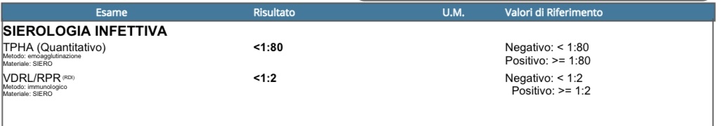 Con questi ennesimi risultati posso scongiurare almeno la sifilide?