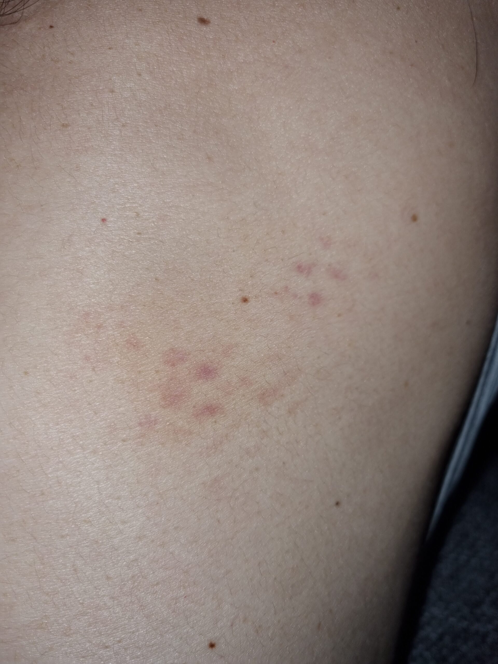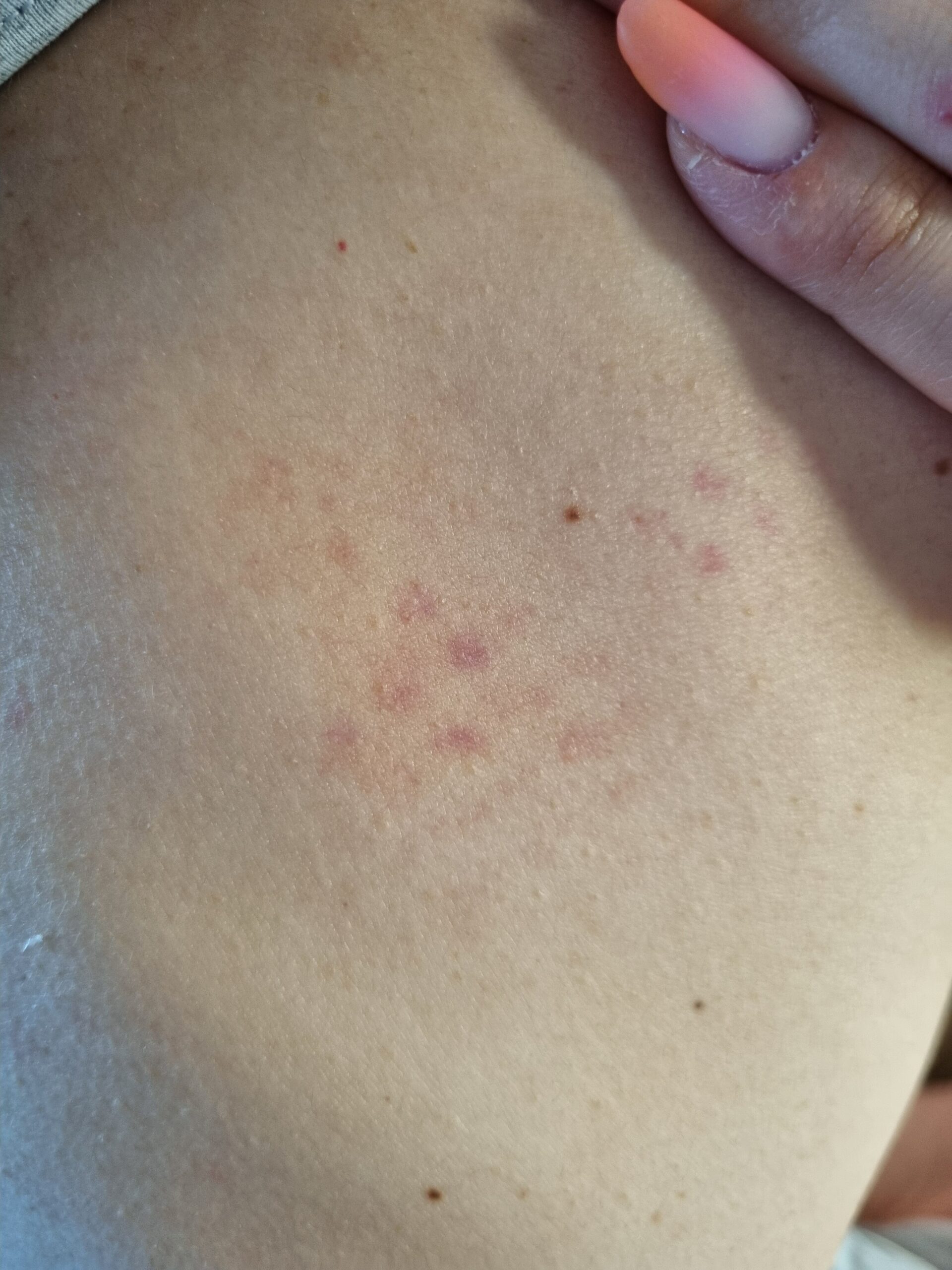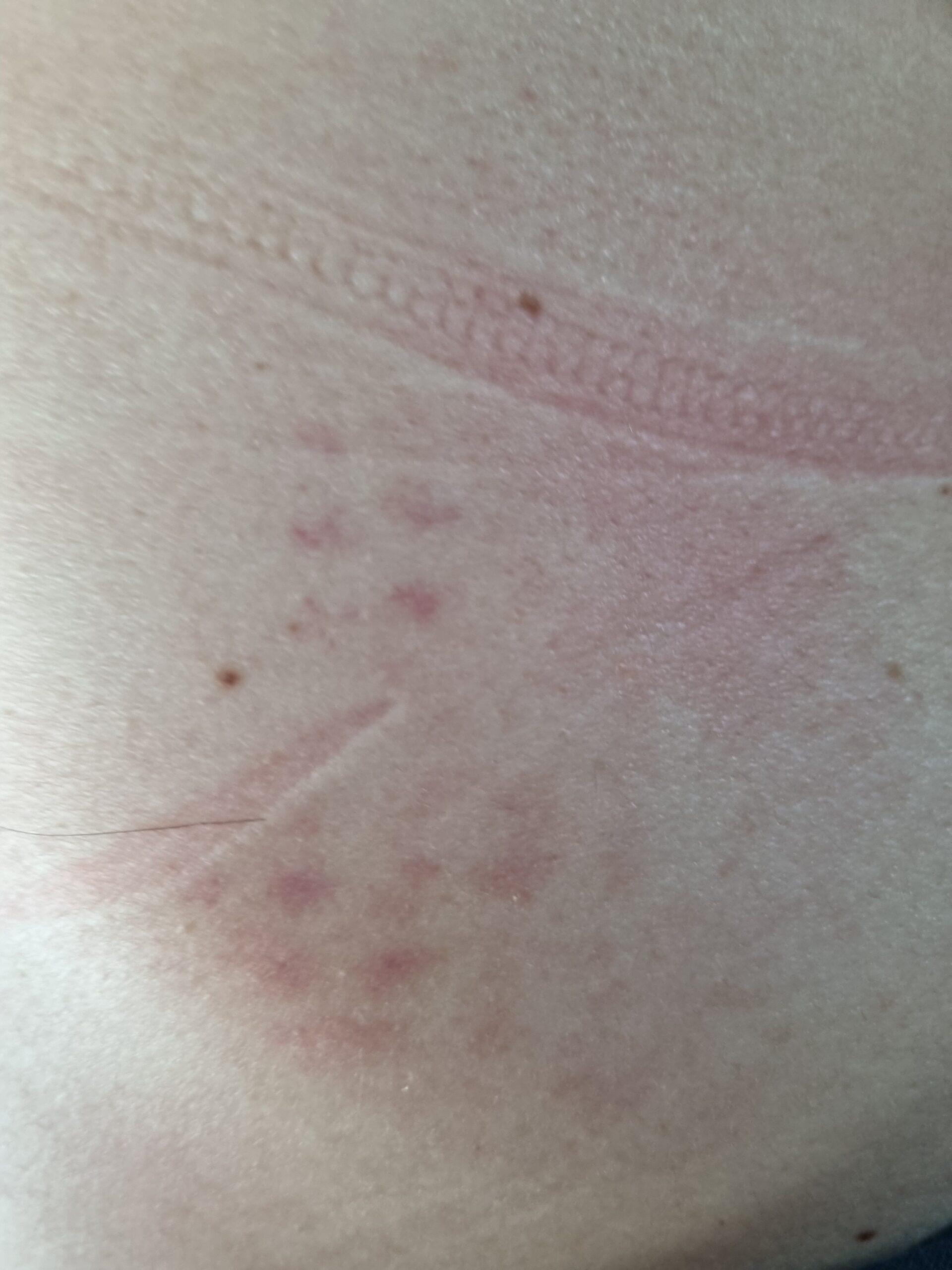 Grazie mille per la risposta. La questione è che però non riesco ad identificare nessun oggetto su cui mi sia appoggiato a pelle nuda. Ho sempre avuto una maglietta addosso. Persiste uguale da ieri mattina.