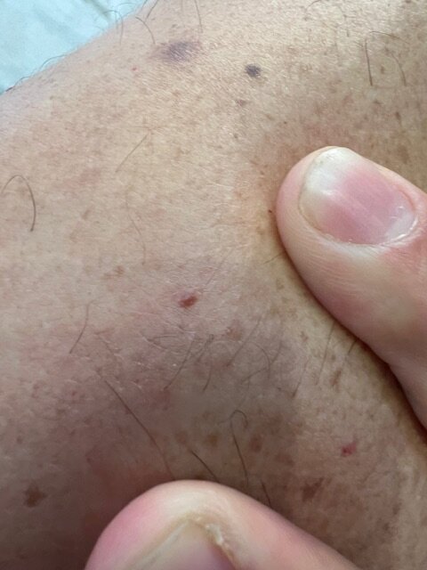 È andata via la crosta nera ematica e sierosa da solo senza toccare. . Ora si presenta di nuovo un nevo rilevato al tatto e nemmeno più senza quel Brufoletto puntina bianca.