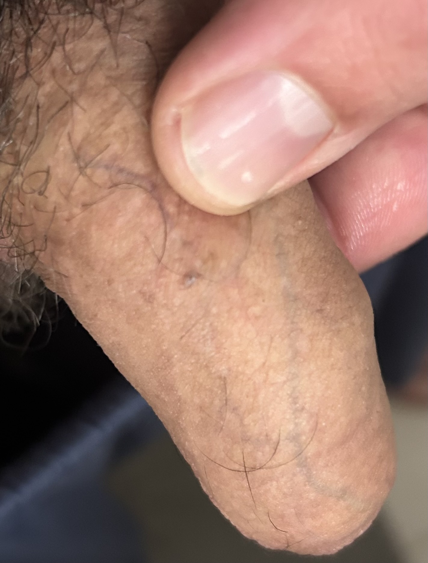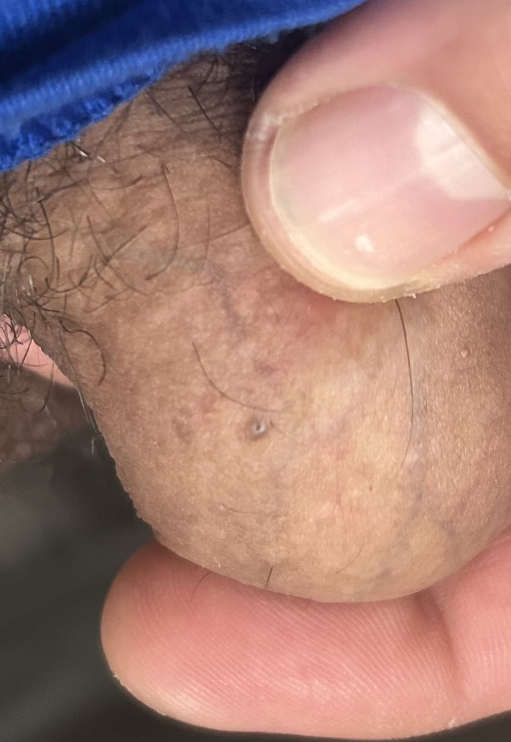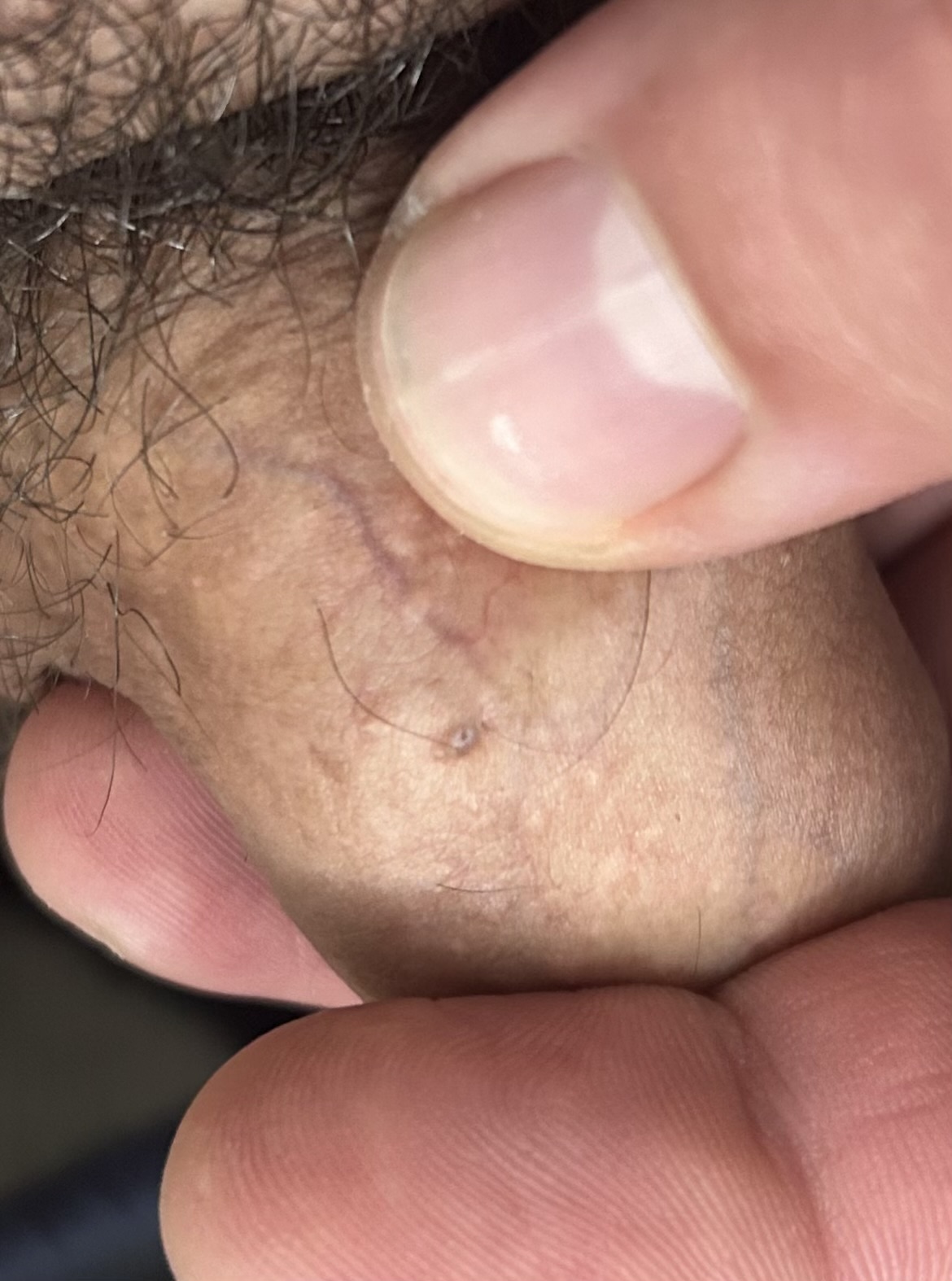 Salve dottore, ho notato da un paio di giorni questa pallina(al tatto semi-dura) scura totalmente indolore (se schiaccio molto da un po di dolore) sull’asta del pene.I rapporti non sono protetti con mia moglie . Secondo lei cosa potrebbe essere? Malattia venereologica o infettiva? Devo preoccuparmi? Cosa potrei applicarci?