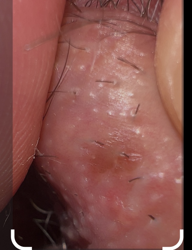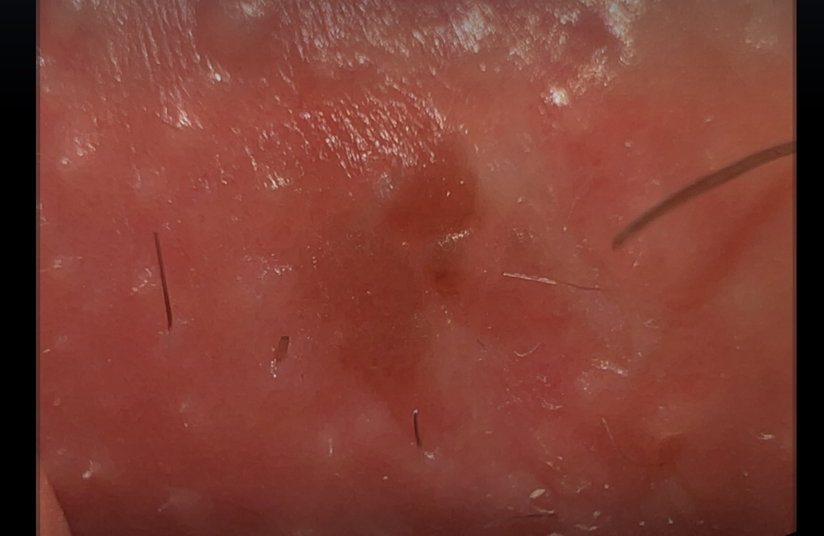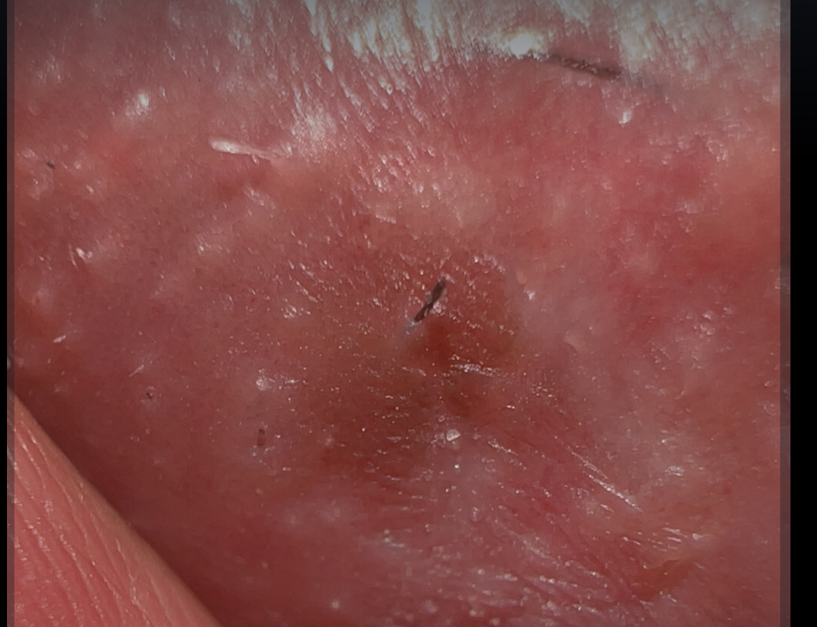 Oggi? Ho grattato più volte pensando fosse un brufolo, ho guardato e ovviamente si è arrossato. Ho fatto foto.