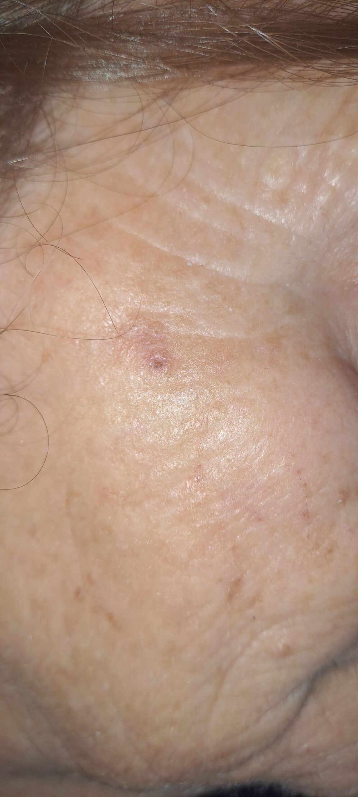 Oggi invece siamo stati dal dermatologo per un’altra lesione di cui allego foto. Ha eseguito dermoscopia e ha controllato tronco e arti. Ha escluso mollusco per assenza di ombelicatura.