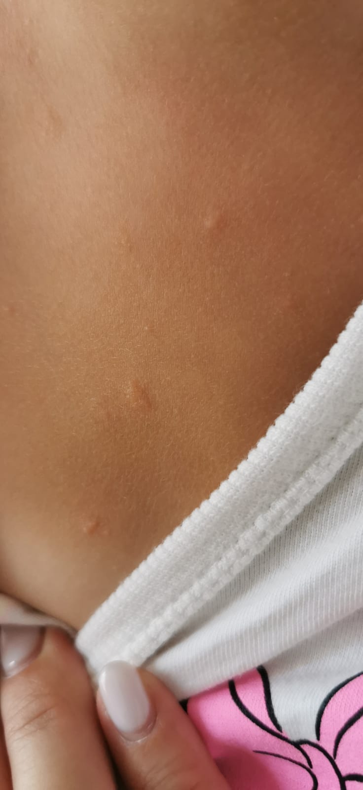Buon pomeriggio dottore, mia figlia di 4 anni ha queste macchie, che in alcuni casi sono micro bollicine e altri macchie striate, e altre bollicine, non le fanno prurito. Si stanno estendendo sempre di più.sono presenti sia sul petto che sulla schiena. Cosa potrebbe essere? Io non ho messo nulla ancora sulla pelle. La ringrazio in anticipo