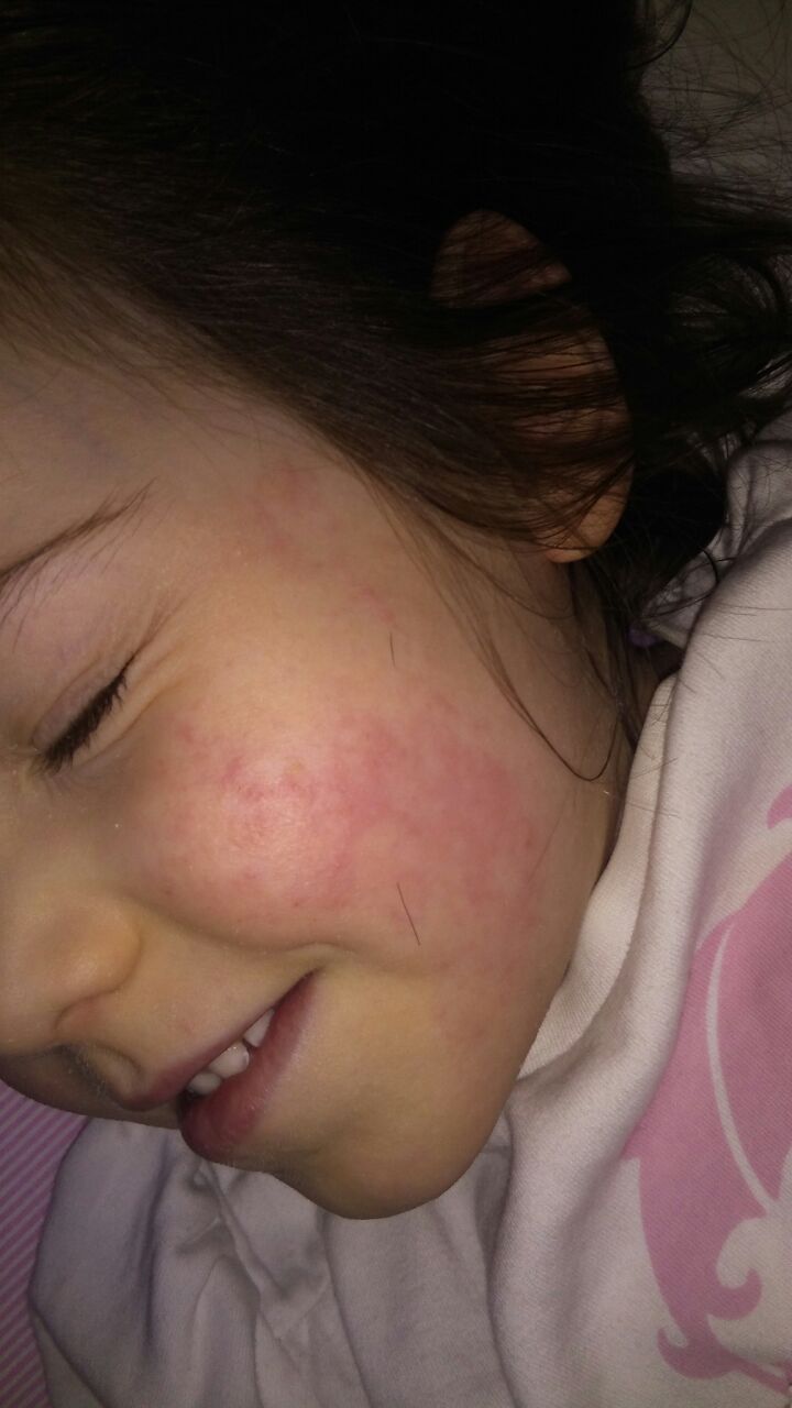 Vi invio delle foto di mia figlia che attualmente è infiammata principalmente sulle guance e ha il lobo dell’orecchio spaccato. Da 3 gg sto mettendo unguento ai peg 2 volte al di ma non vedo miglioramenti. Il permanganato di potassio ancora non ce l’ho e neanche la crema lenitiva dermictiol.