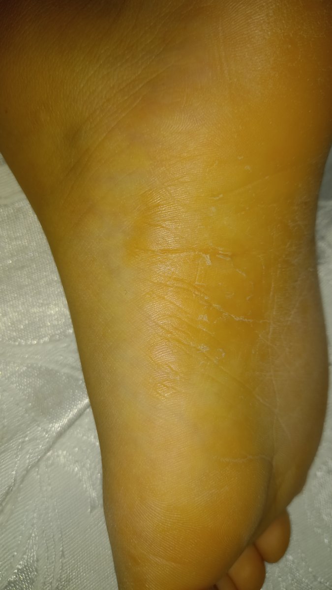 Ad oggi i piedi hanno cambiato aspetto e la pelle sta tornando al suo colore ma si presenta desquamata. Noto che si desquama anche l’alluce.