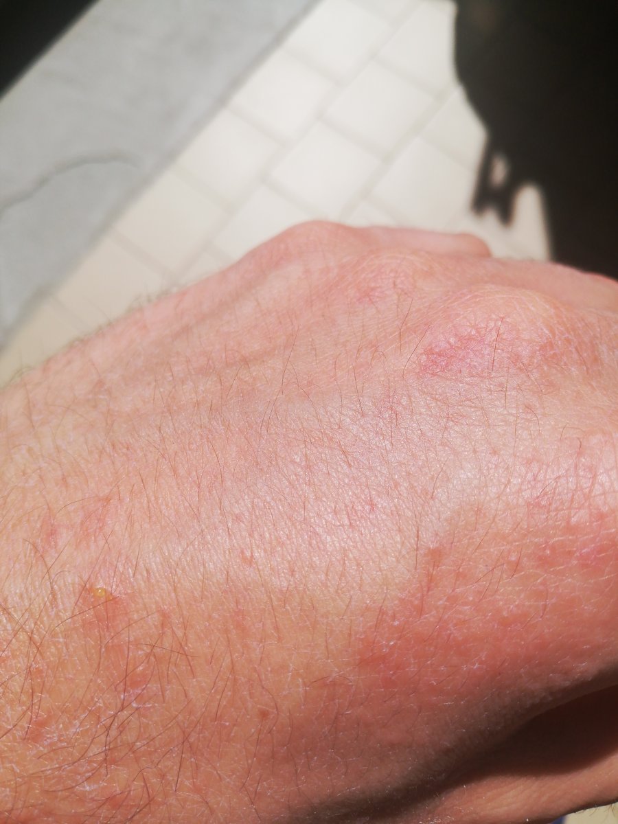 In queste zone c’è concentrazione di ponfi (come in foto all’interno del braccio) che prudono molto, si riempiono di siero e sangue e io li gratto aprendoli praticamente quotidianamente. Conti che la medesima cosa è sul collo, sul petto, sulle spalle e sull’altro braccio. In altre zone tipo pancia, zone intime, avambracci ho forte prurito ma non rush di questo genere (tolto qualche piccolo ponfo qua e là, identico a quelli che gli ho fatto vedere).