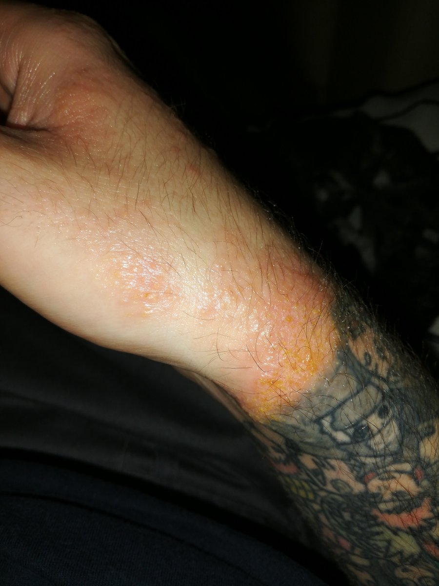 Se nota la pelle, nella seconda foto, ha sempre questa forte impetiginazione. Quello è il braccio dopo averlo grattato.
