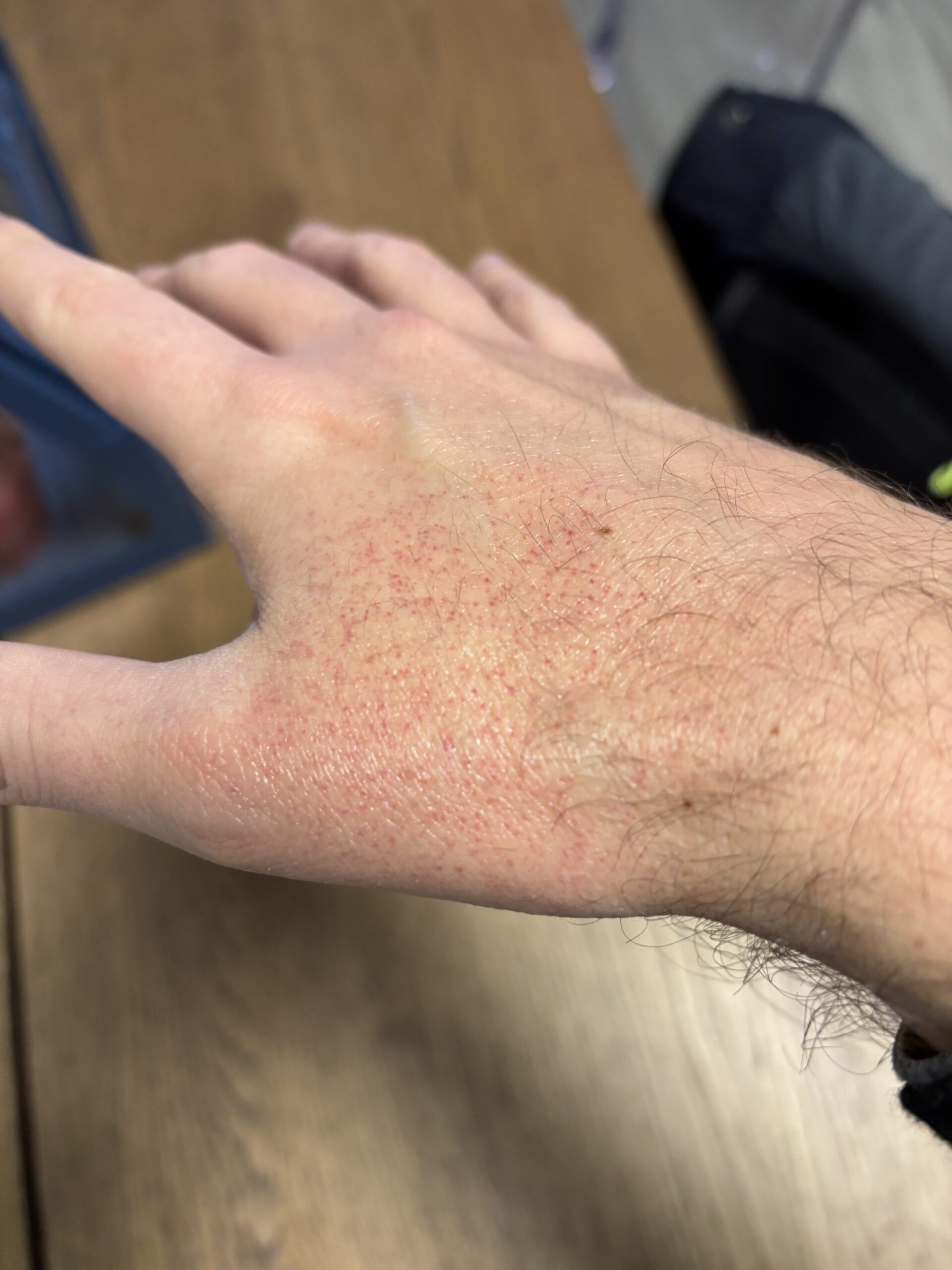 Salve, stamattina mi sono svegliato con questi puntini sulla mano. Nessun prurito. Cosa posso fare?